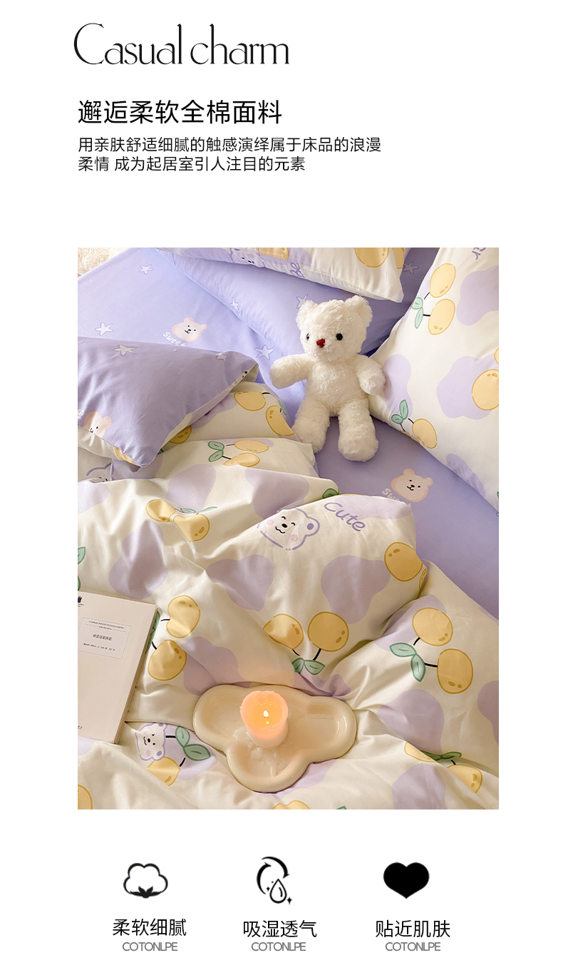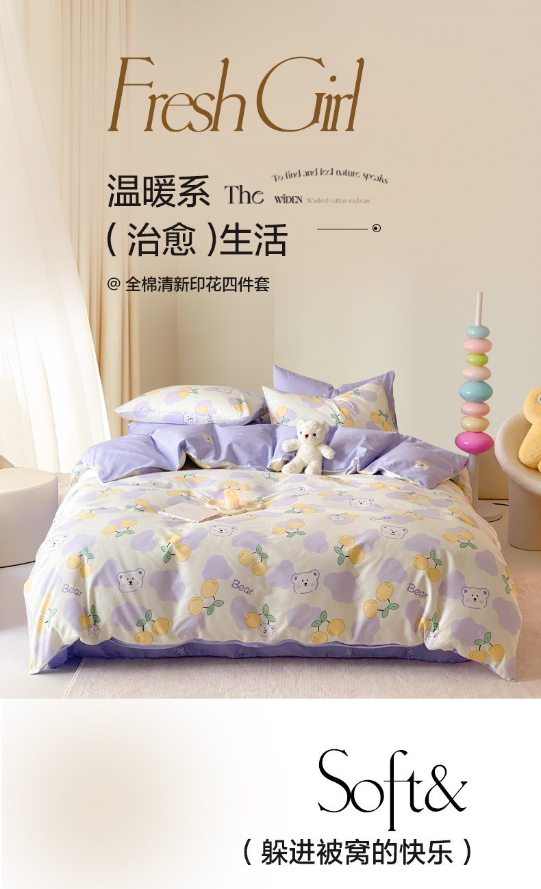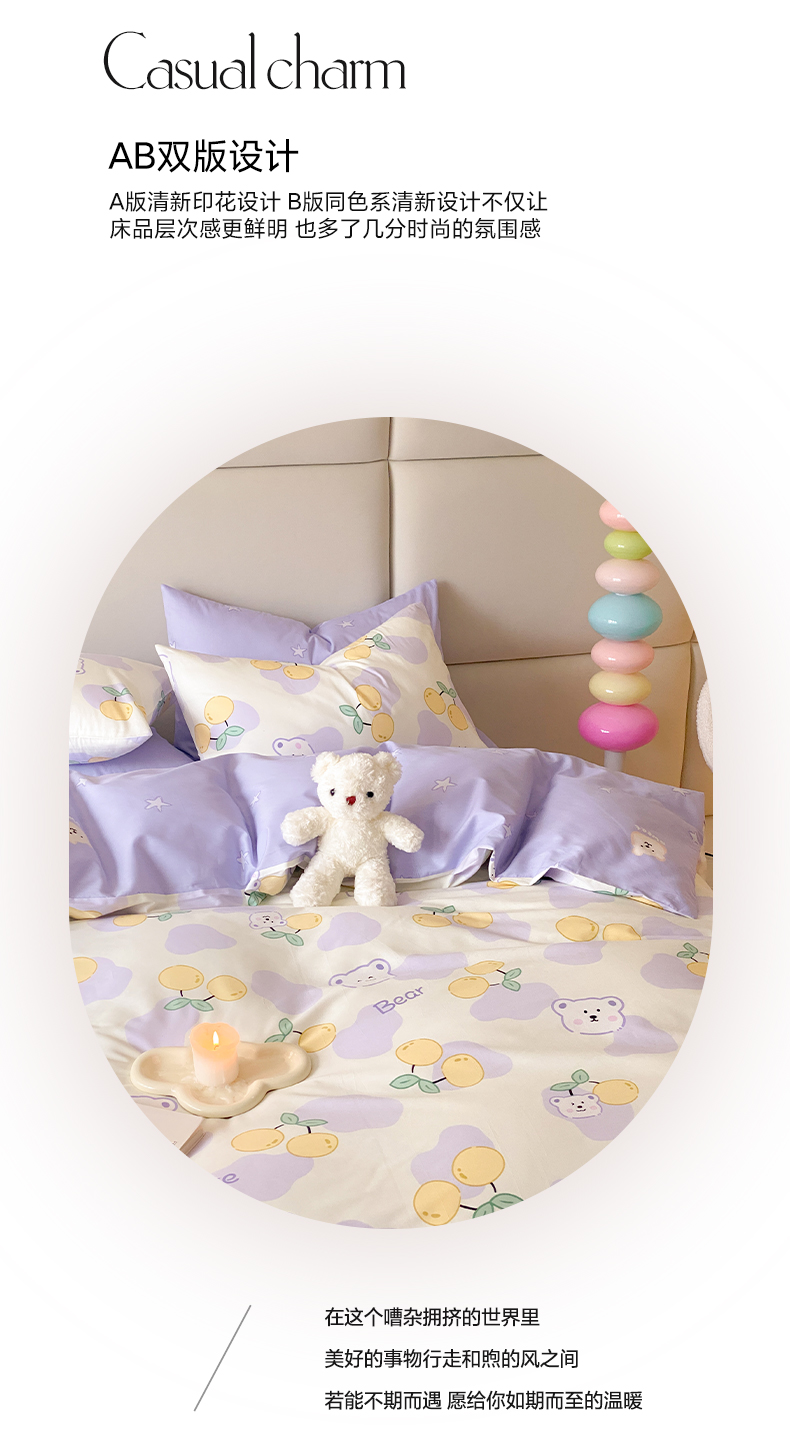 宜家坊 2024新款全棉喷气13070小清新印花四件套-拍摄一 熊噜噜爱果子