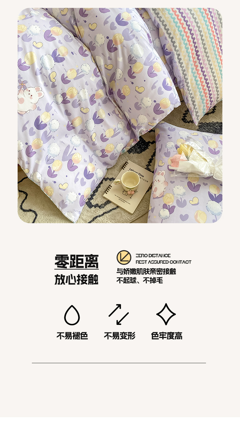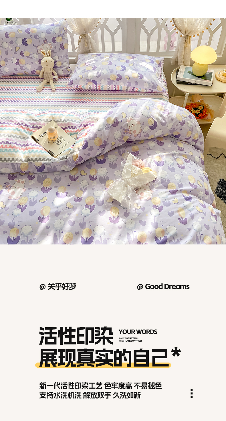 商品名称:宜家坊 2024新款全棉13070小清新印花四件套-拍摄二 兔个可爱