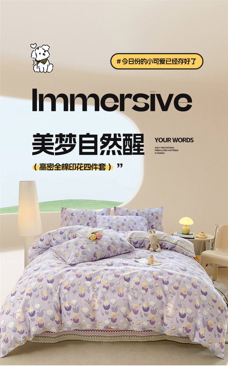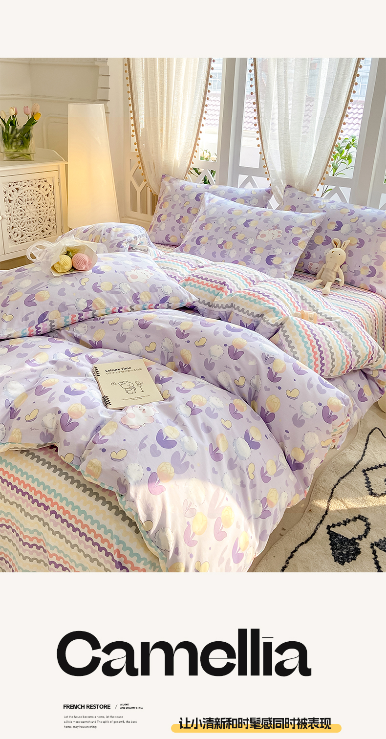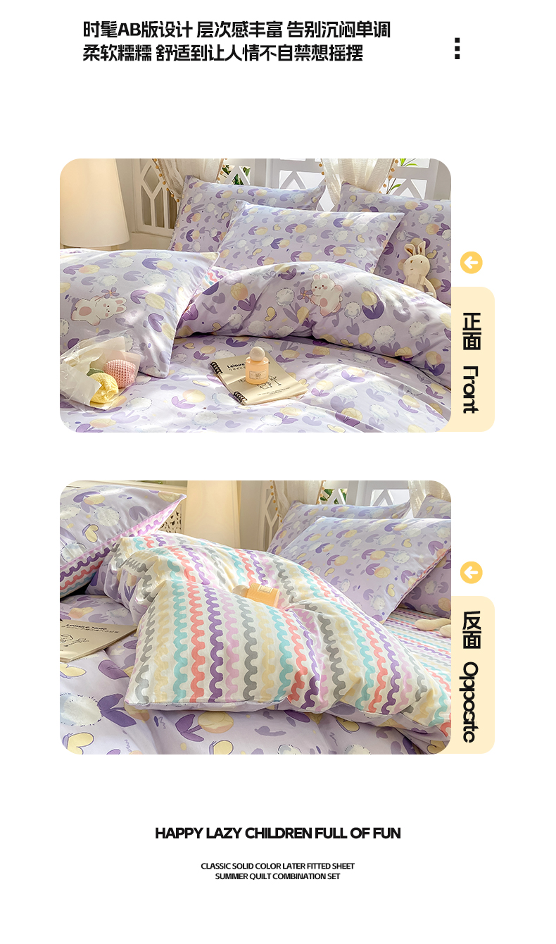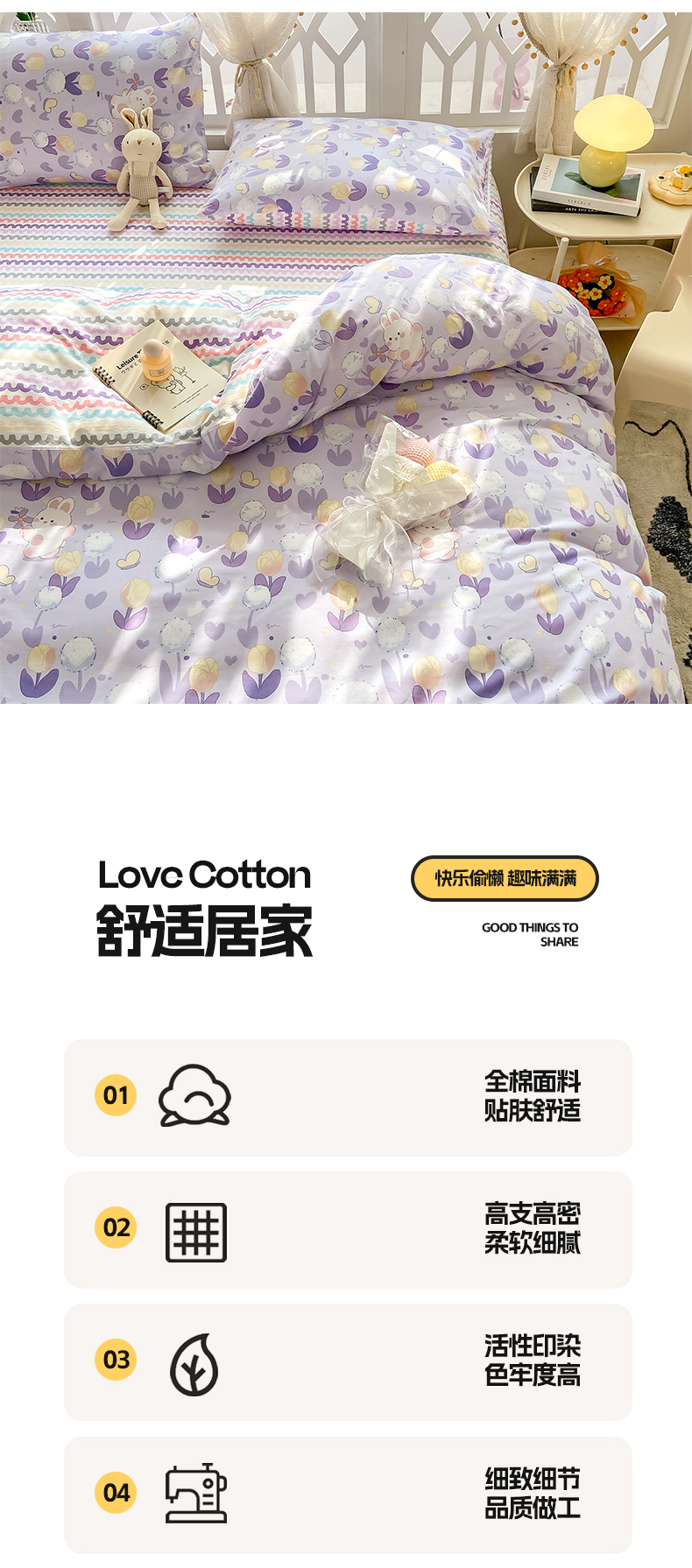 宜家坊 2024新款全棉13070小清新印花四件套-拍摄二 兔个可爱