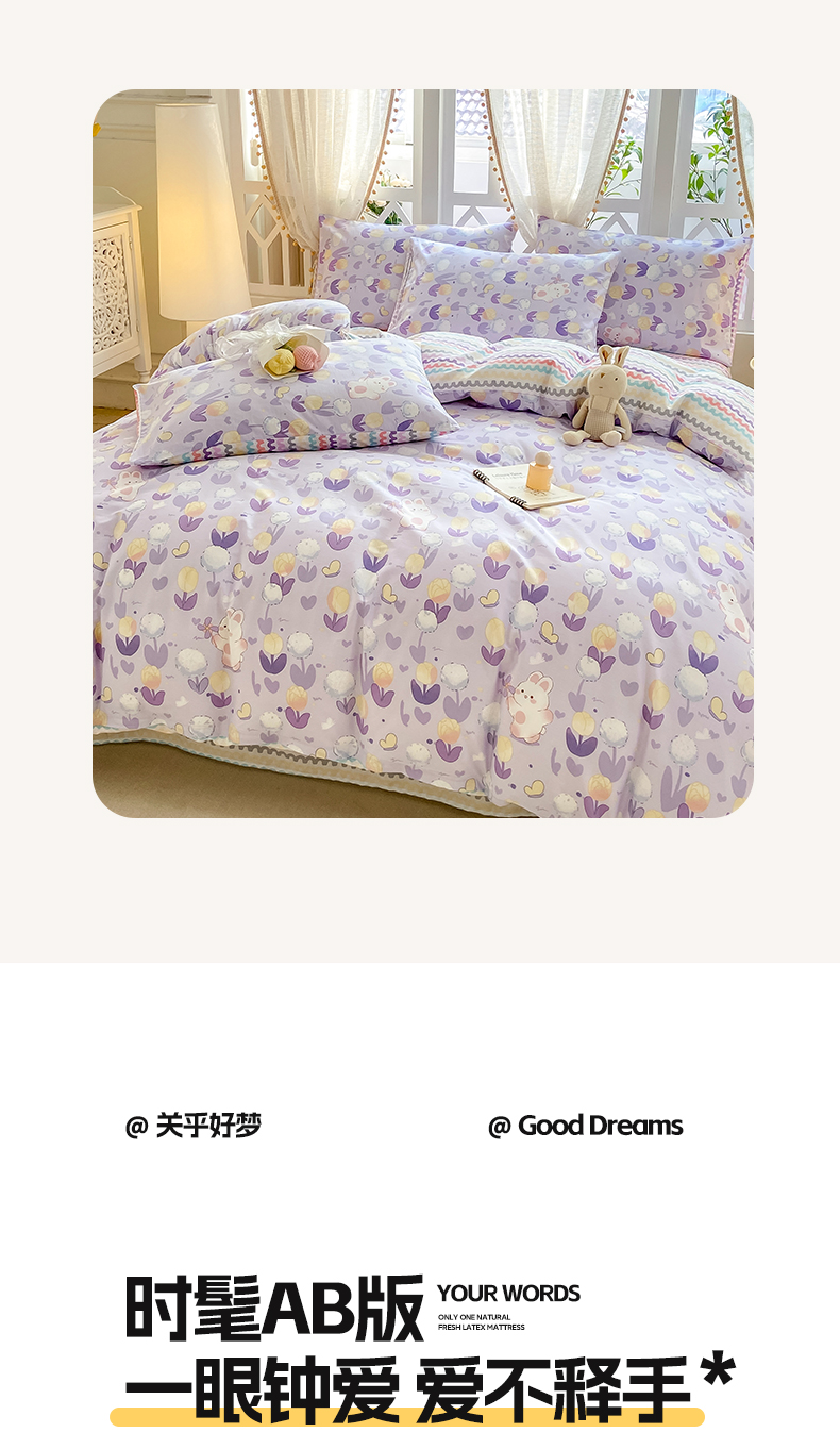 (总)宜家坊 2023新款直播韩版印花花边款牛奶绒四件套,比格熊,草莓兔,春暖花开,告白,加油鸭,流星花园,萌萌熊,牛油果,千鸟格,小女孩,一见倾心,郁金香