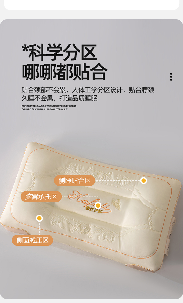 当前位置: 91家纺网 > 商品网购 > 枕头/枕芯/保健枕/颈椎枕 > 帝诺妮枕芯坊 2024新款蚕丝护颈枕 灰色