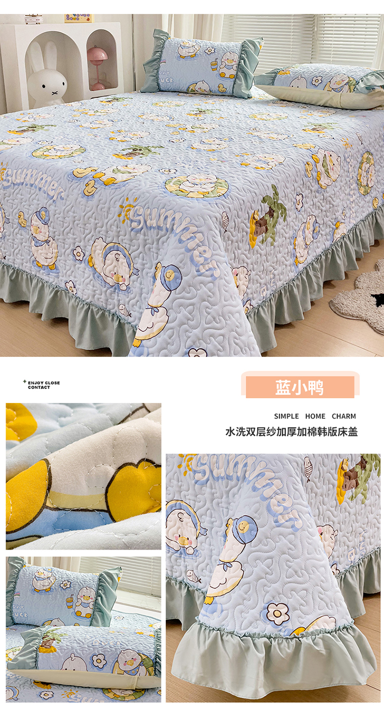 商品名称:纽缦家纺 2024水洗双层纱加厚加棉韩版床盖 蓝小鸭