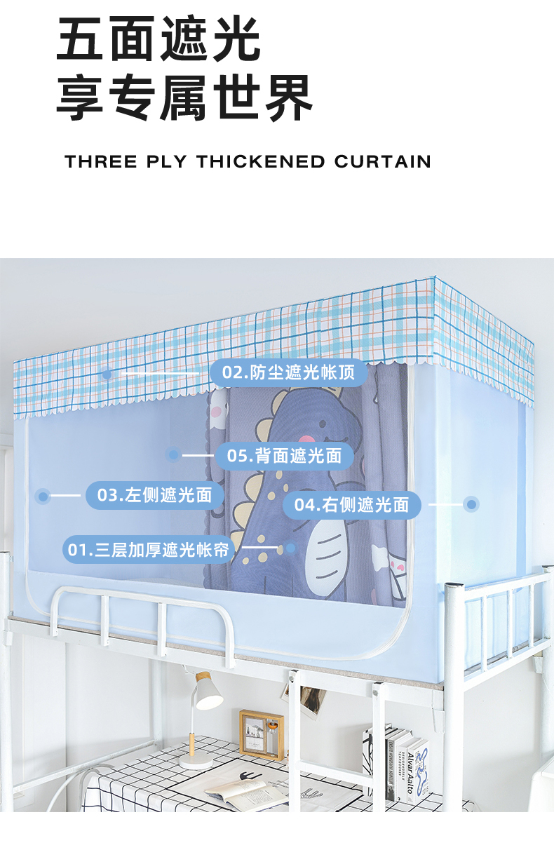 (总)宅部落 2025新款学生床帘宿舍上下铺床帘式印花强遮光学生蚊帐-纯色系,藏蓝,灰色,浅卡其,浅蓝