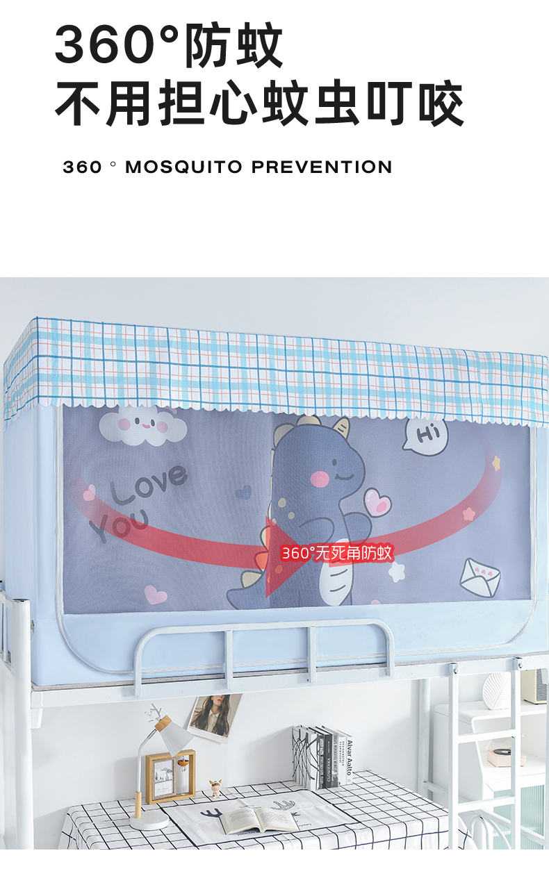 商品名称:宅部落 2024新款特价款学生上下铺蚊帐强遮光床帘一体式蚊帐 快乐恐龙