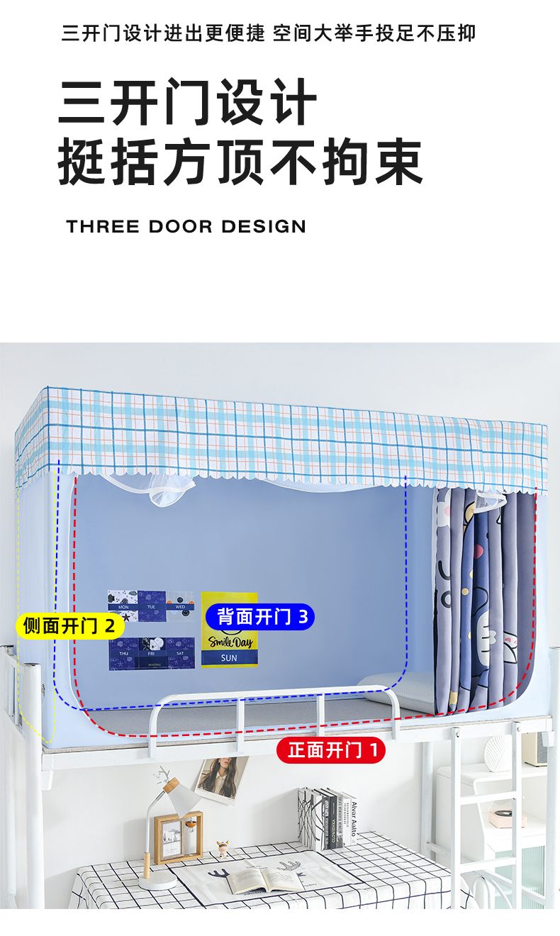 (总)宅部落 2025新款学生床帘宿舍上下铺床帘式强遮光学生蚊帐-纯色系列,纯色-藏蓝色,纯色-淡米黄,纯色-黑色,纯色-灰色,纯色-天蓝色