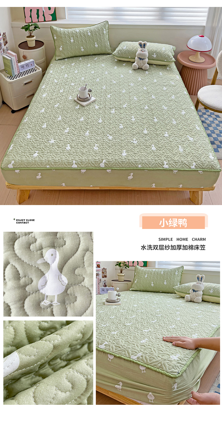 纽缦家纺 水洗双层纱加厚加棉床笠-床垫保护套 小绿鸭