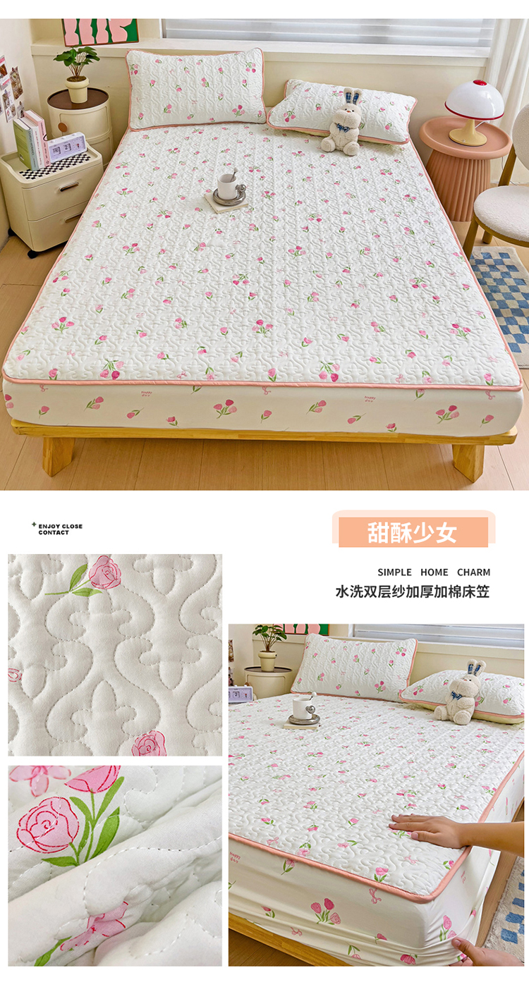 纽缦家纺 水洗双层纱加厚加棉床笠-床垫保护套 甜酥少女