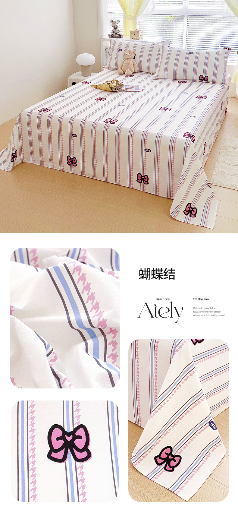商品名称:锦罗绣 2024新款13372全棉印花单品床单 蝴蝶结