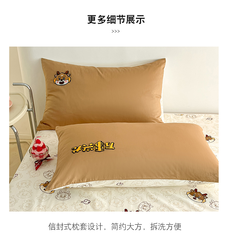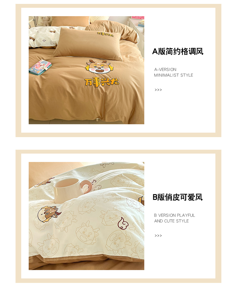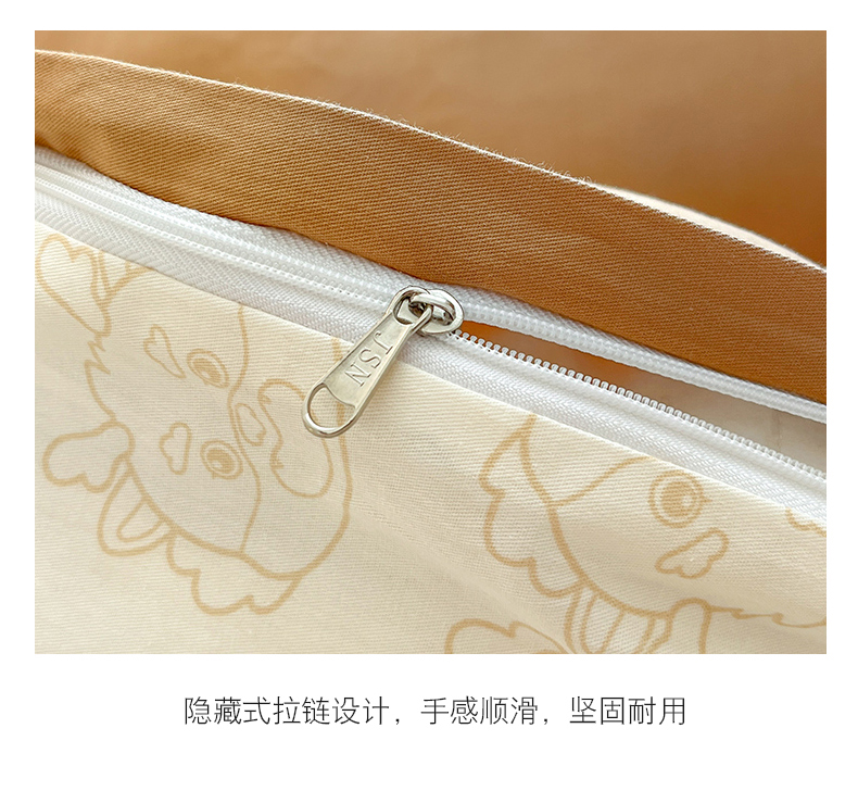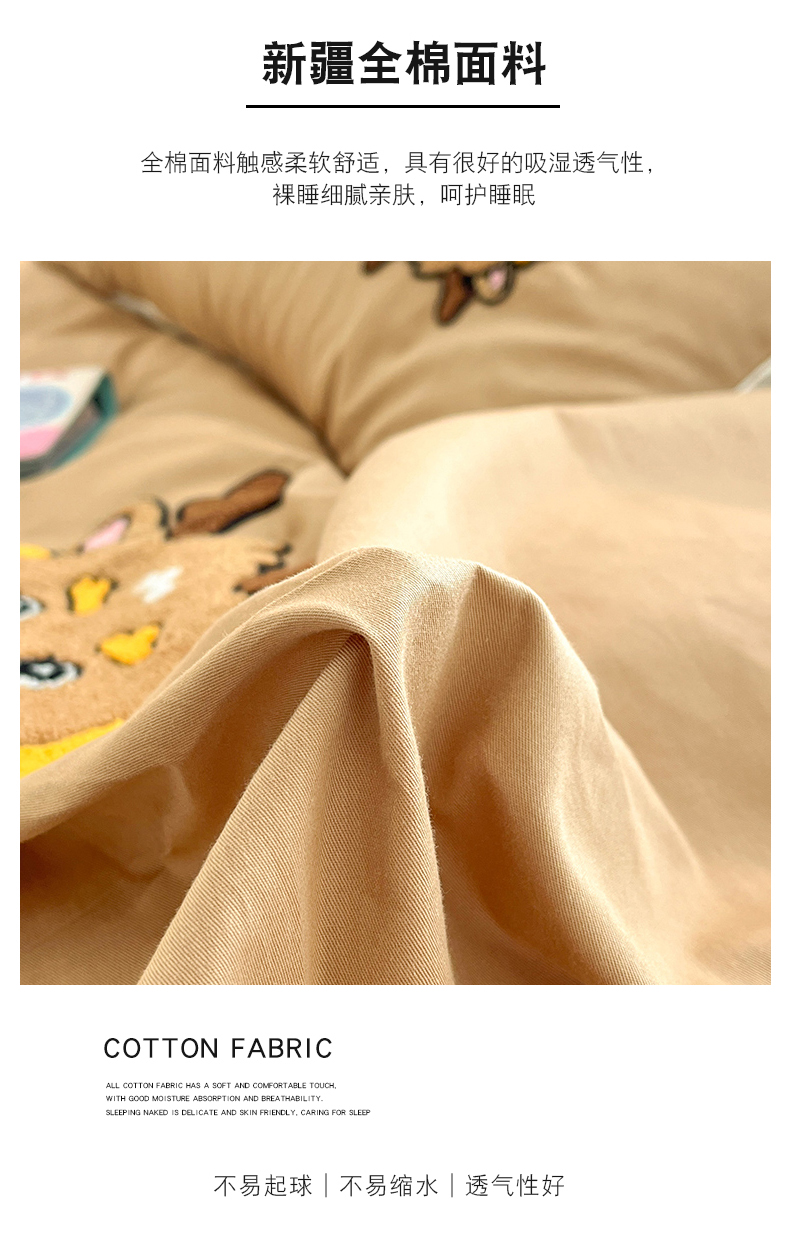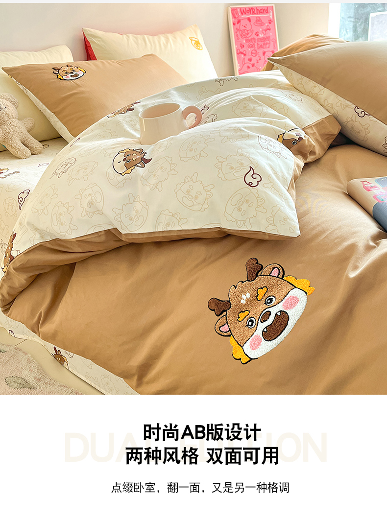 商品名称:金丝鸟家纺 2024新款全棉混搭毛巾绣四件套可爱卡通库洛米系列 咖色小龙