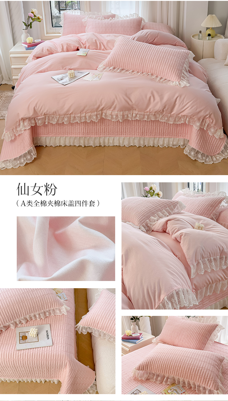 当前位置: 91家纺网 > 商品网购 > 床品套件 > 四件套 > 全棉普通四件套 > 宜凡家纺 2024新款双面全棉印花系列床盖四件套 仙女粉