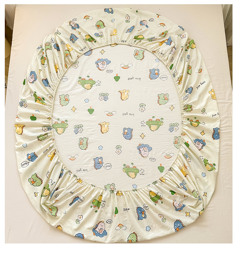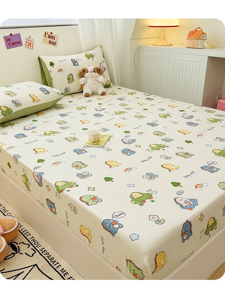 古吉梦 2024新款水洗棉小清新印花床笠 恐龙乐园