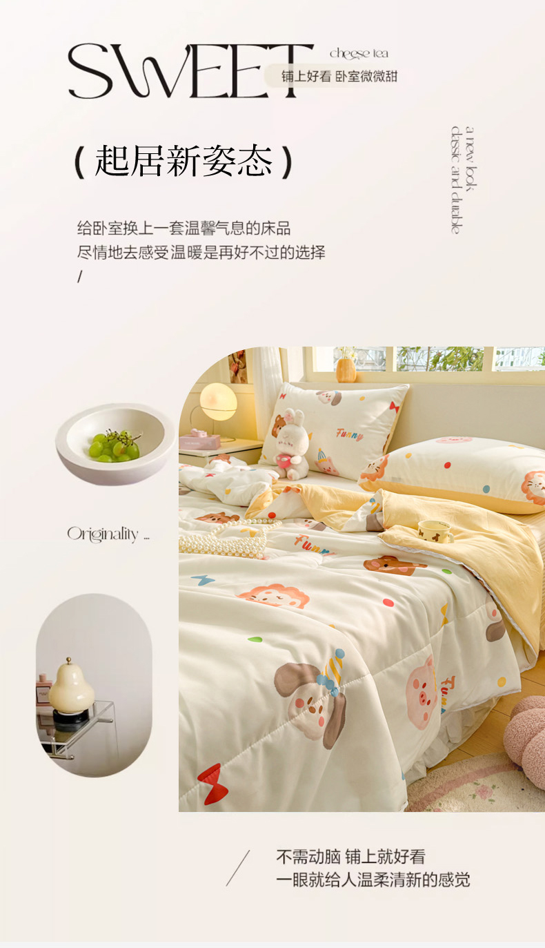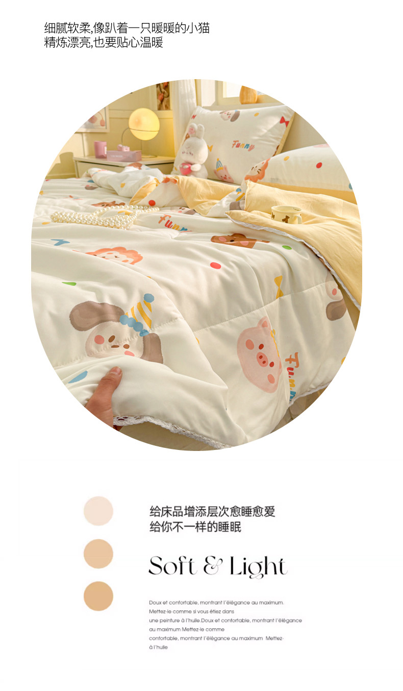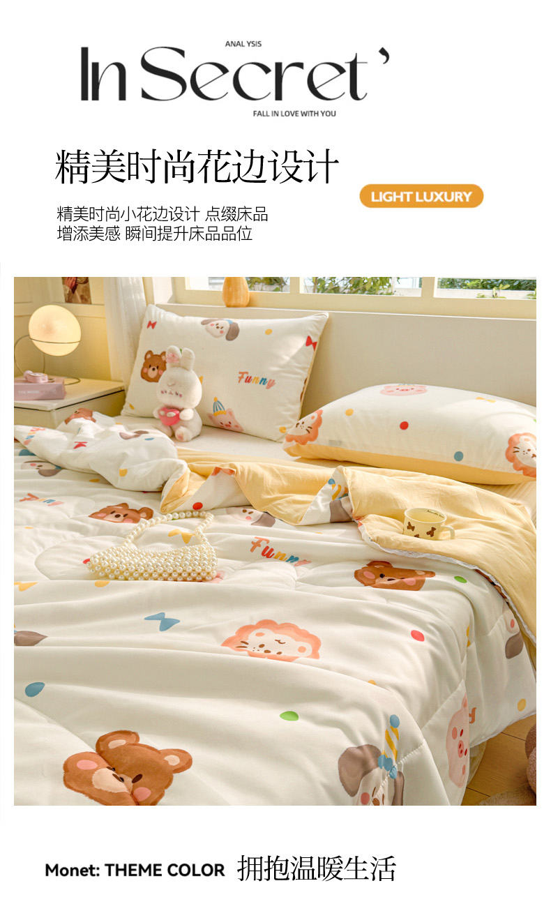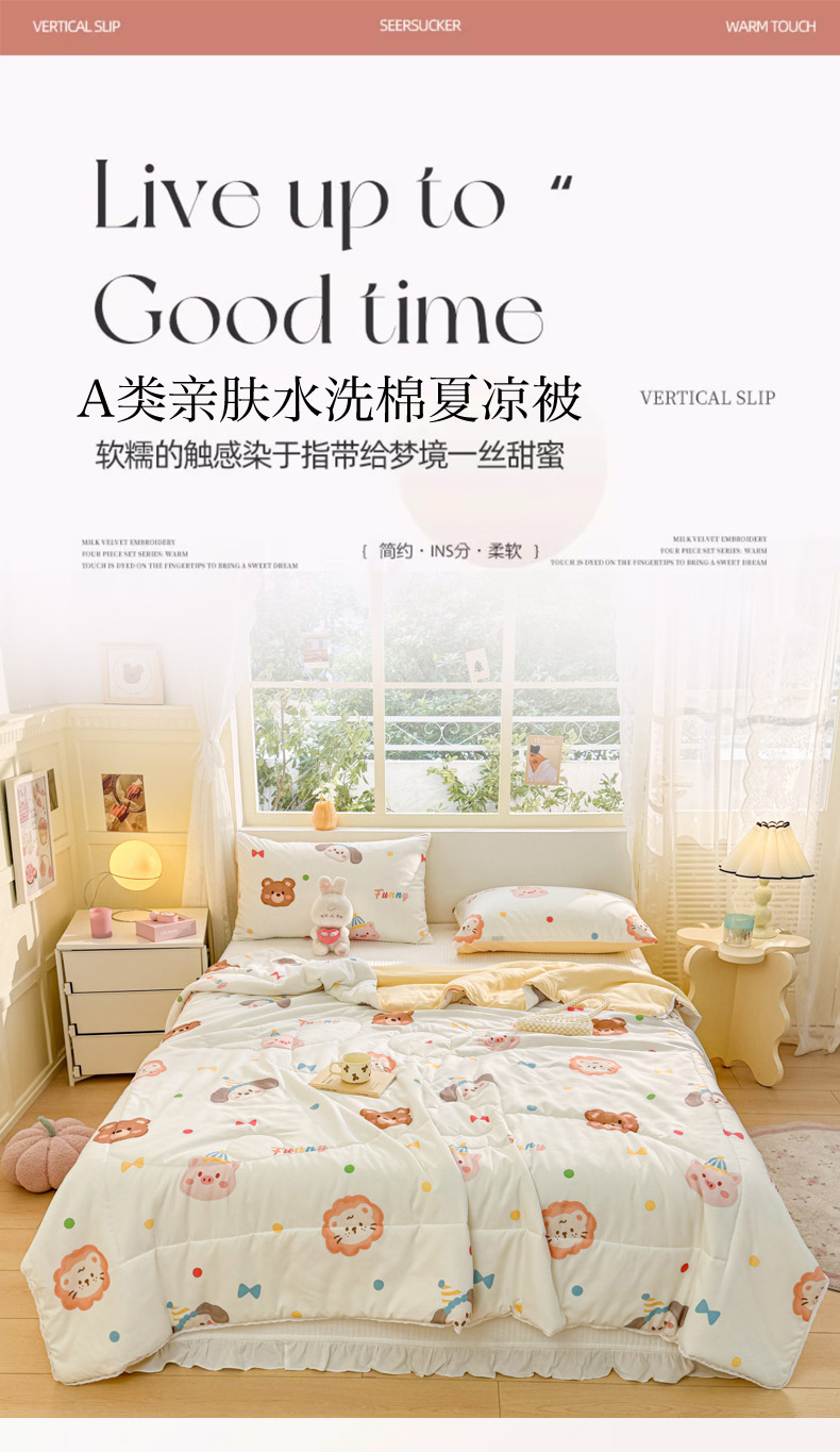商品名称:寐居家纺 2024新款水洗棉小花边夏被 宠物大会