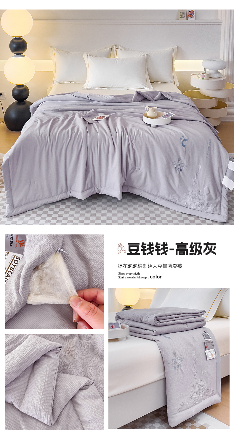 商品名称:优姿家纺 2024新款提花泡泡棉刺绣大豆抗菌夏被 高级灰