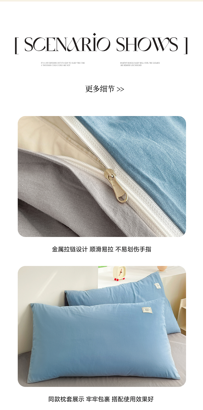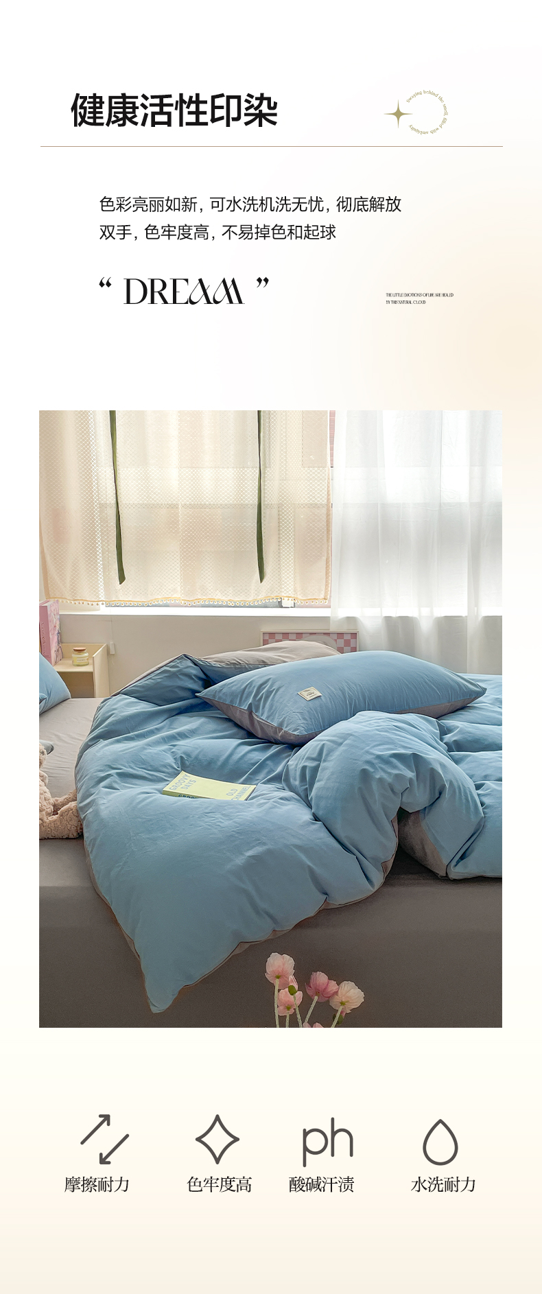 商品名称:雅居纺家纺 2024新款全棉素色水洗棉四件套 清雅蓝绅士灰