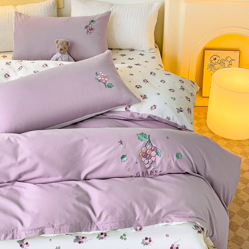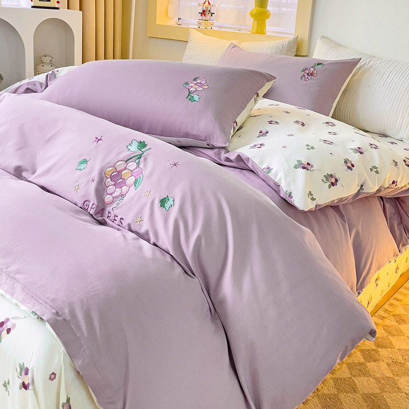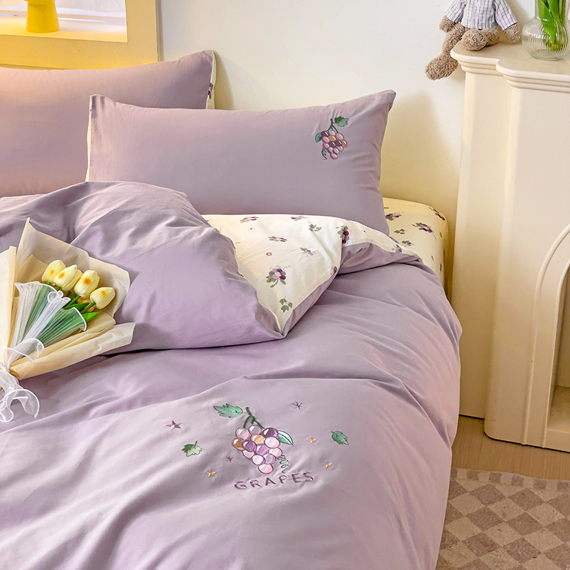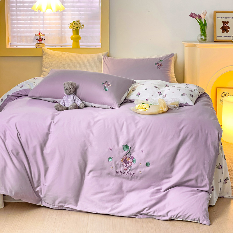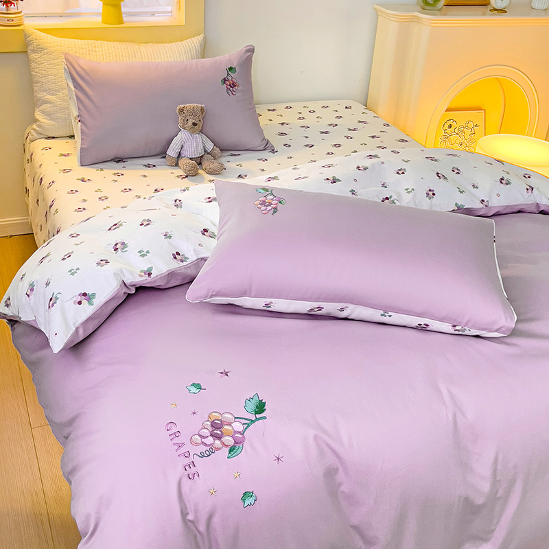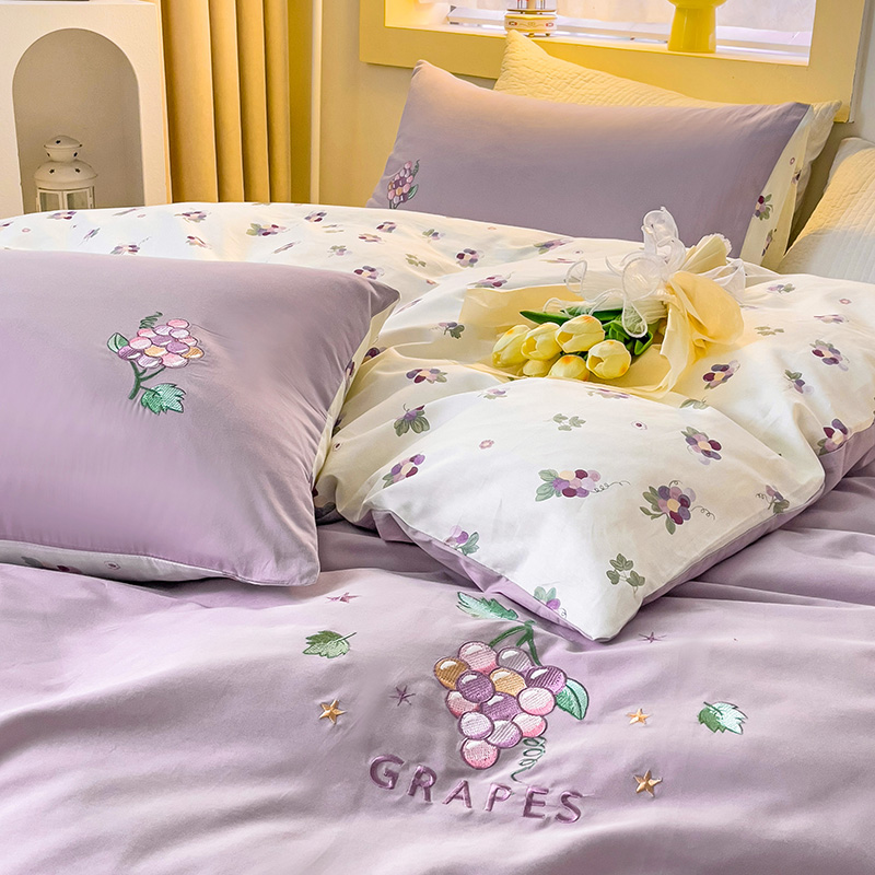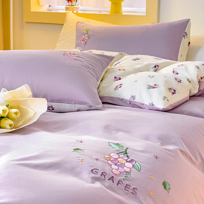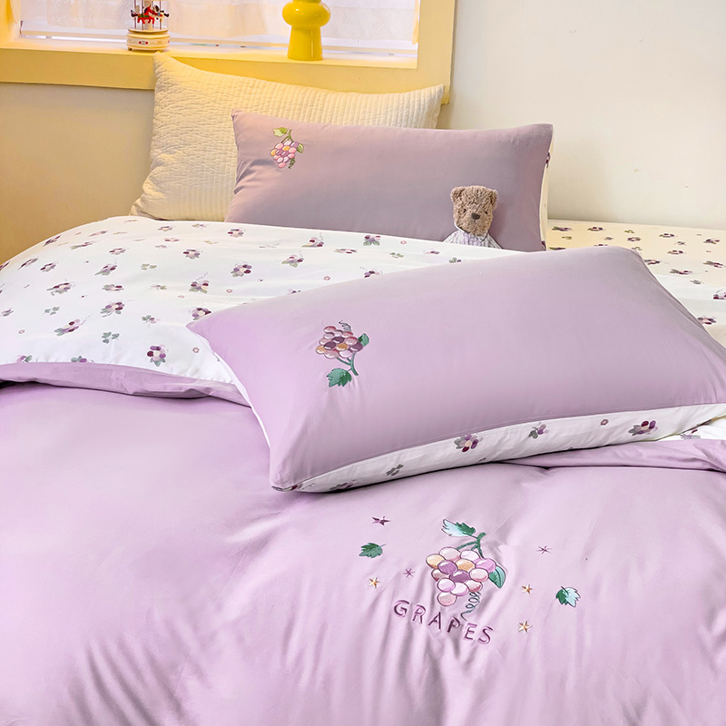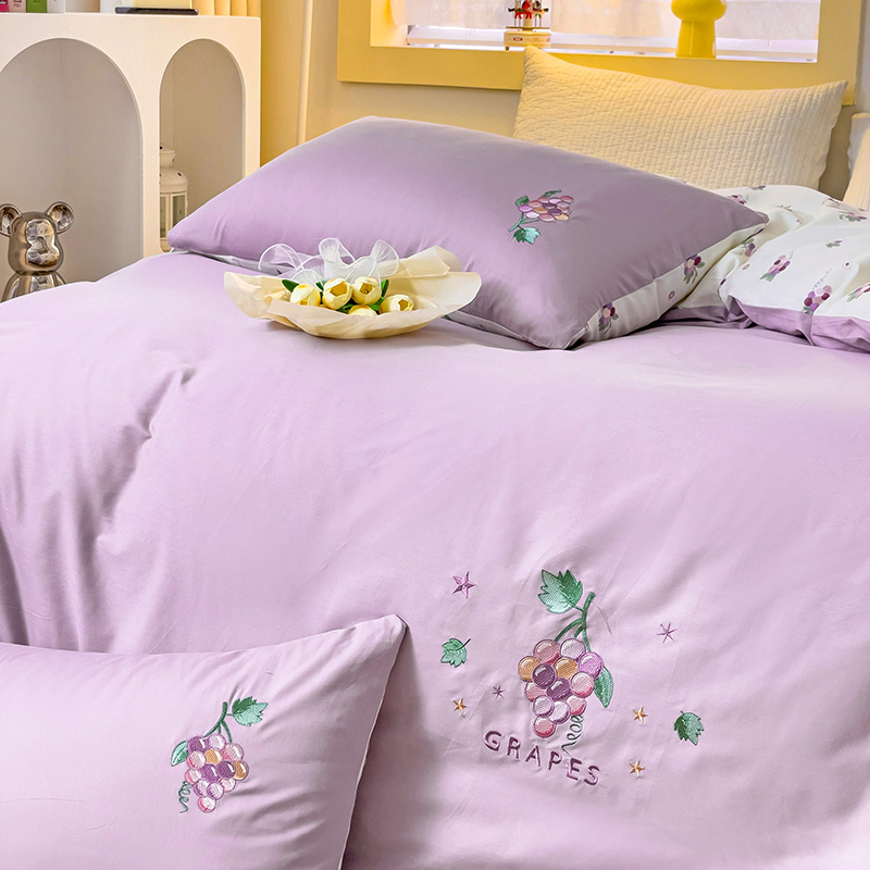 乐童家纺 2024爆款全棉1332呆萌小刺绣系列四件套 葡萄之恋