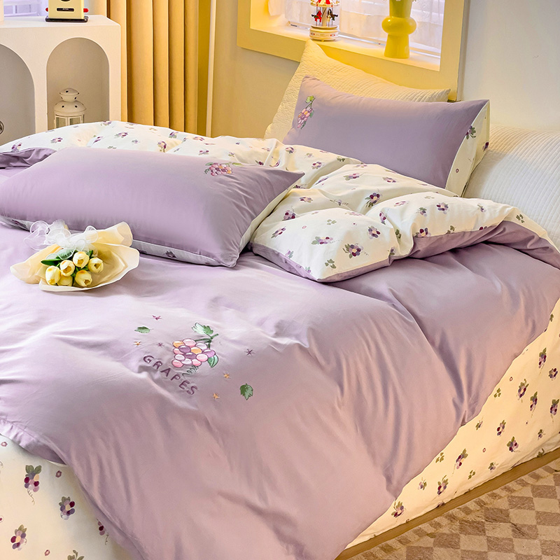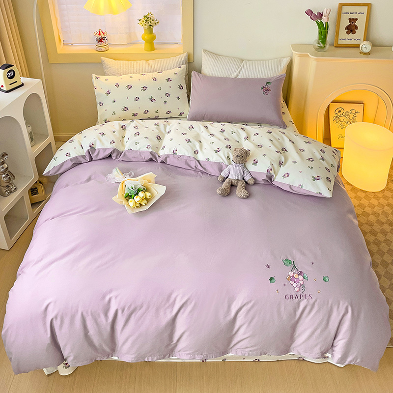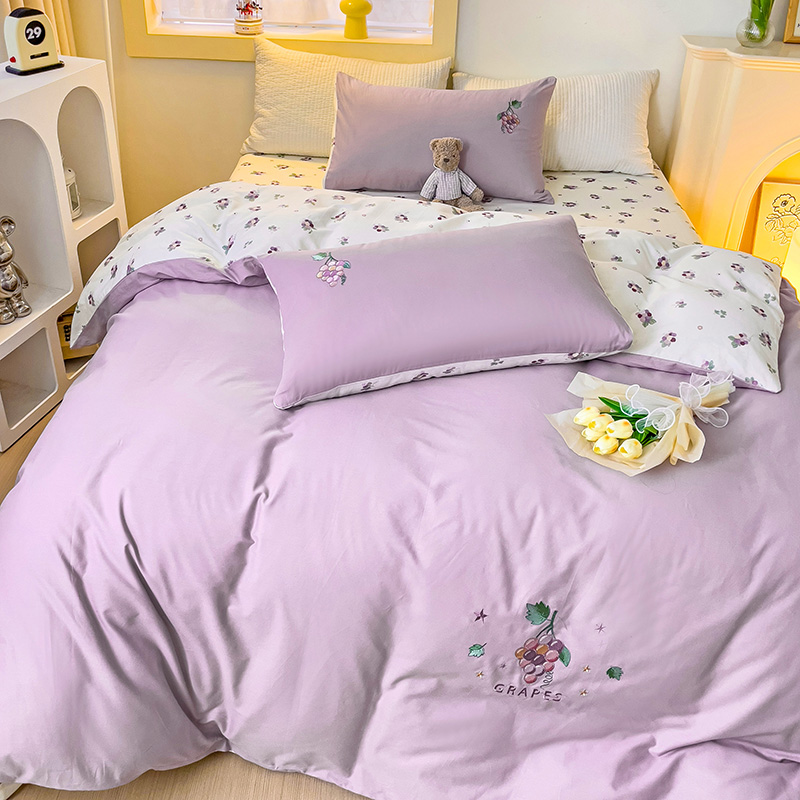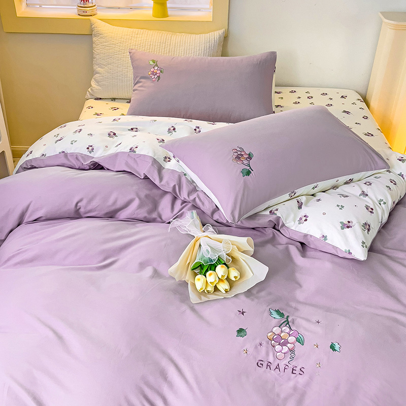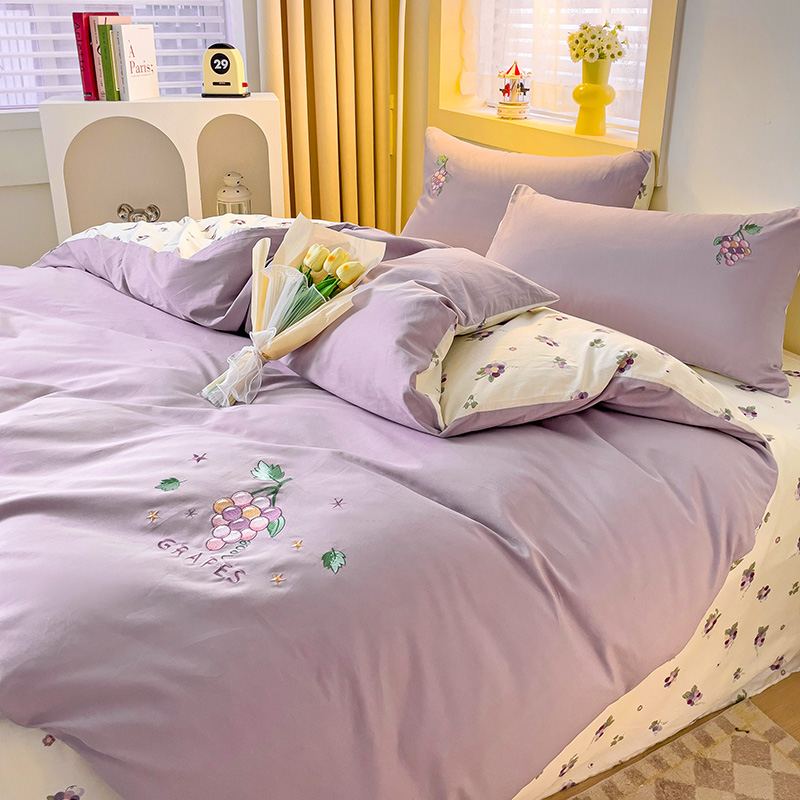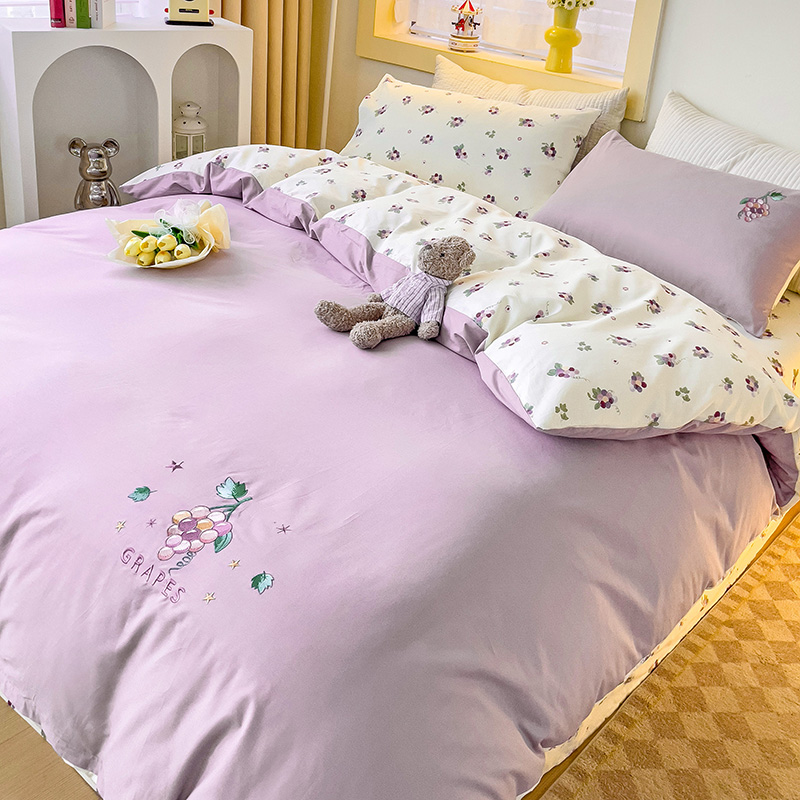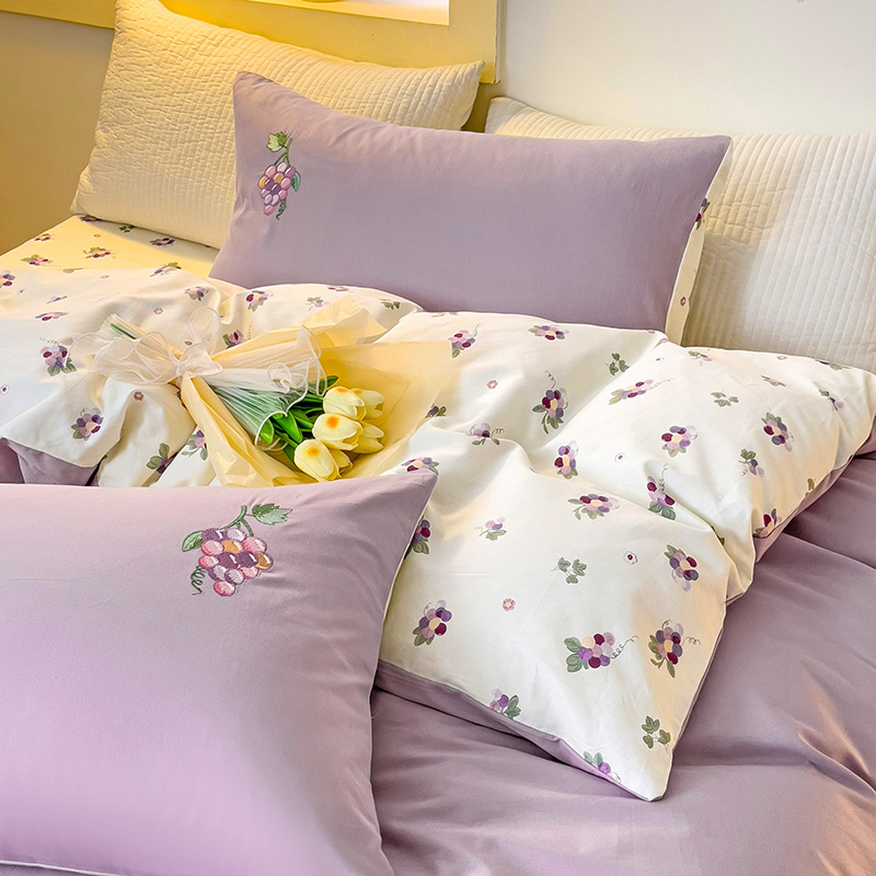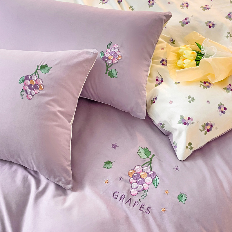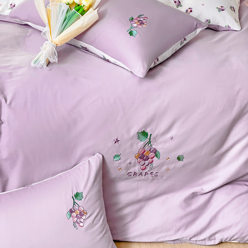 乐童家纺 2024爆款全棉1332呆萌小刺绣系列四件套 葡萄之恋