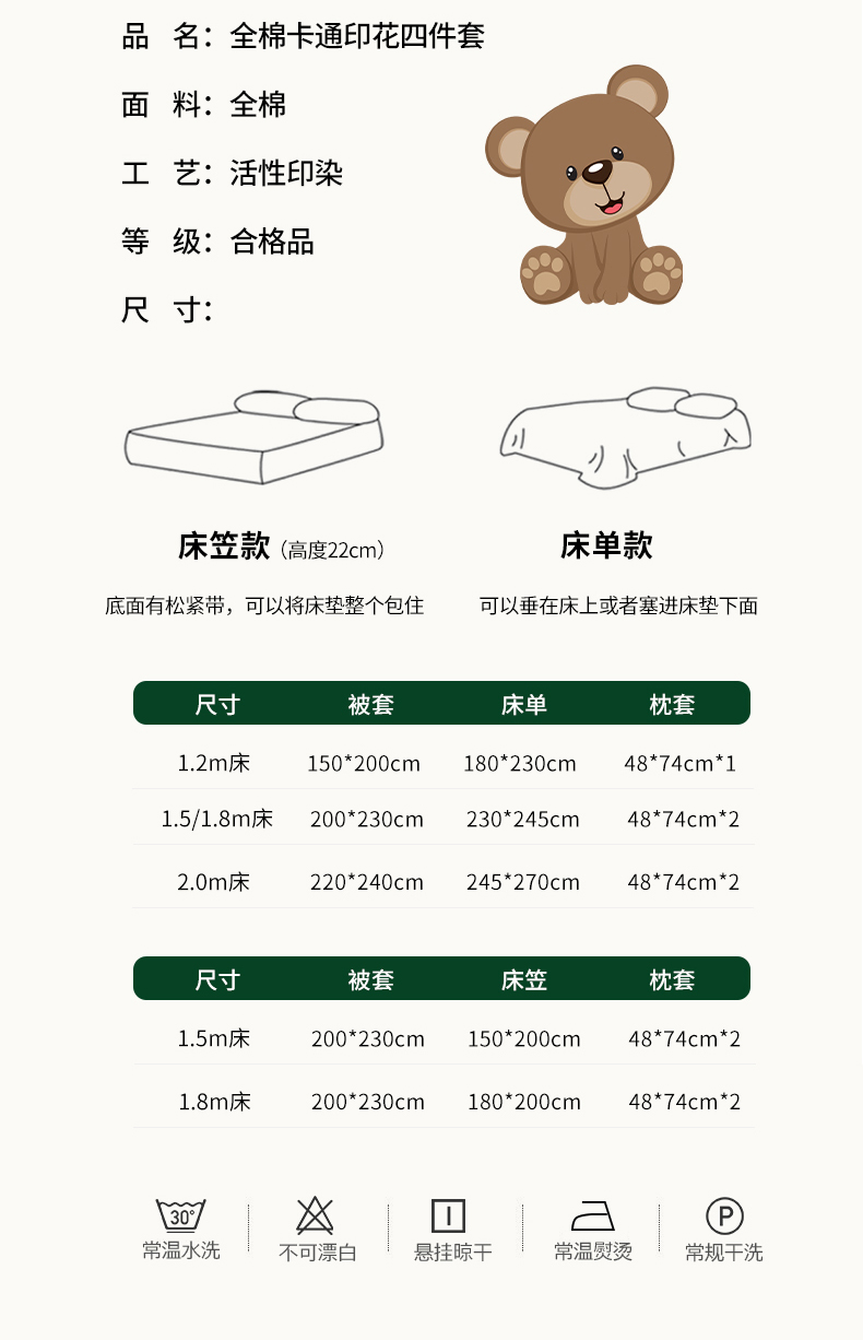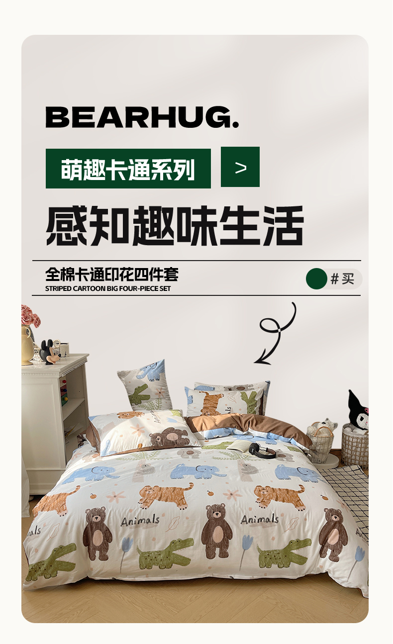商品名称:希文 2024新款全棉卡通印花四件套森林动物日