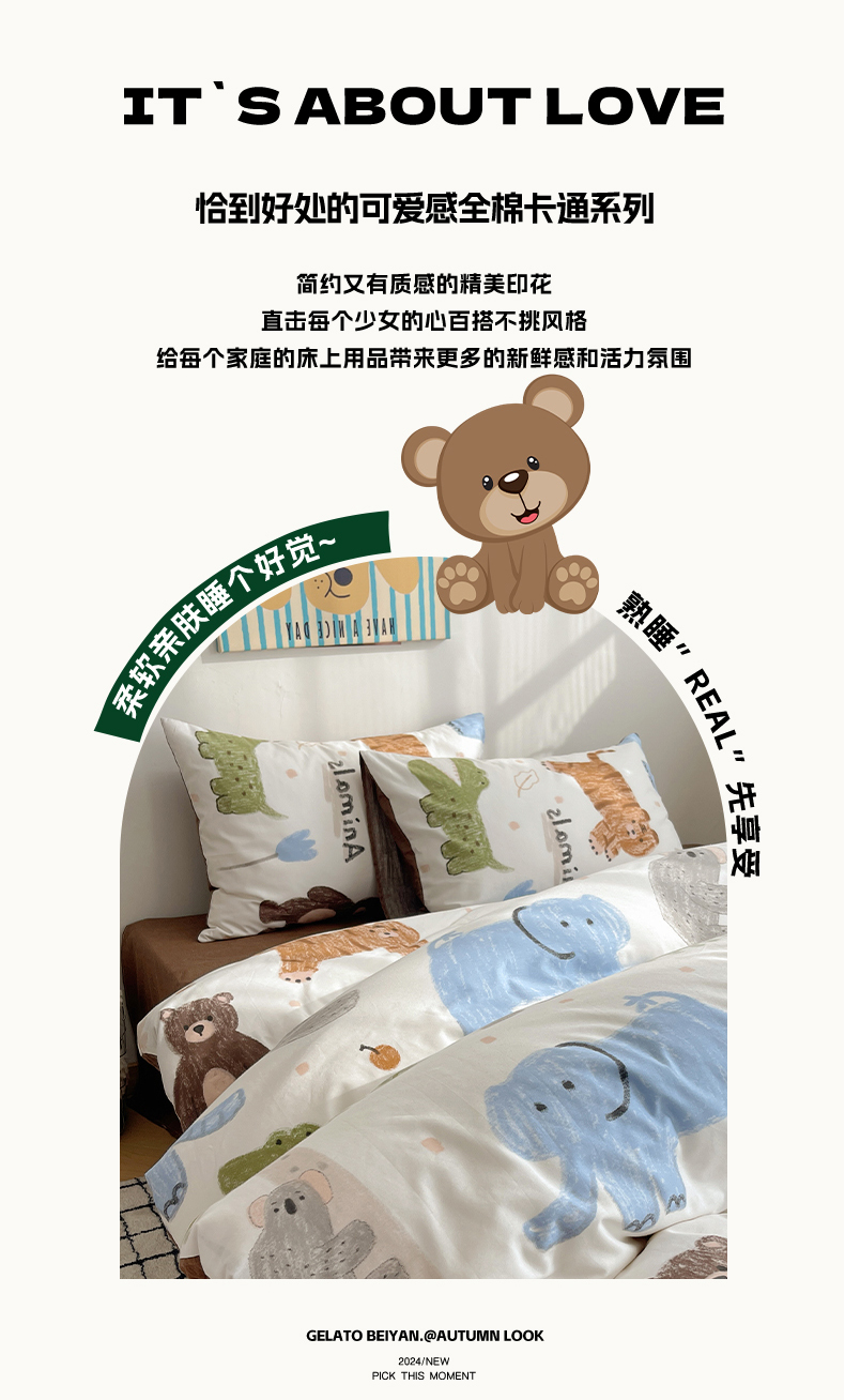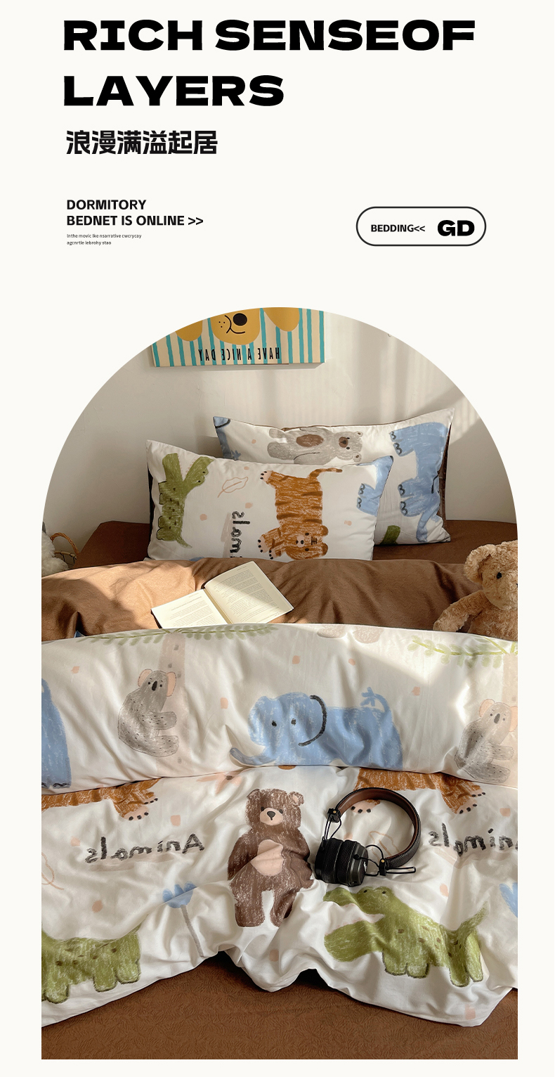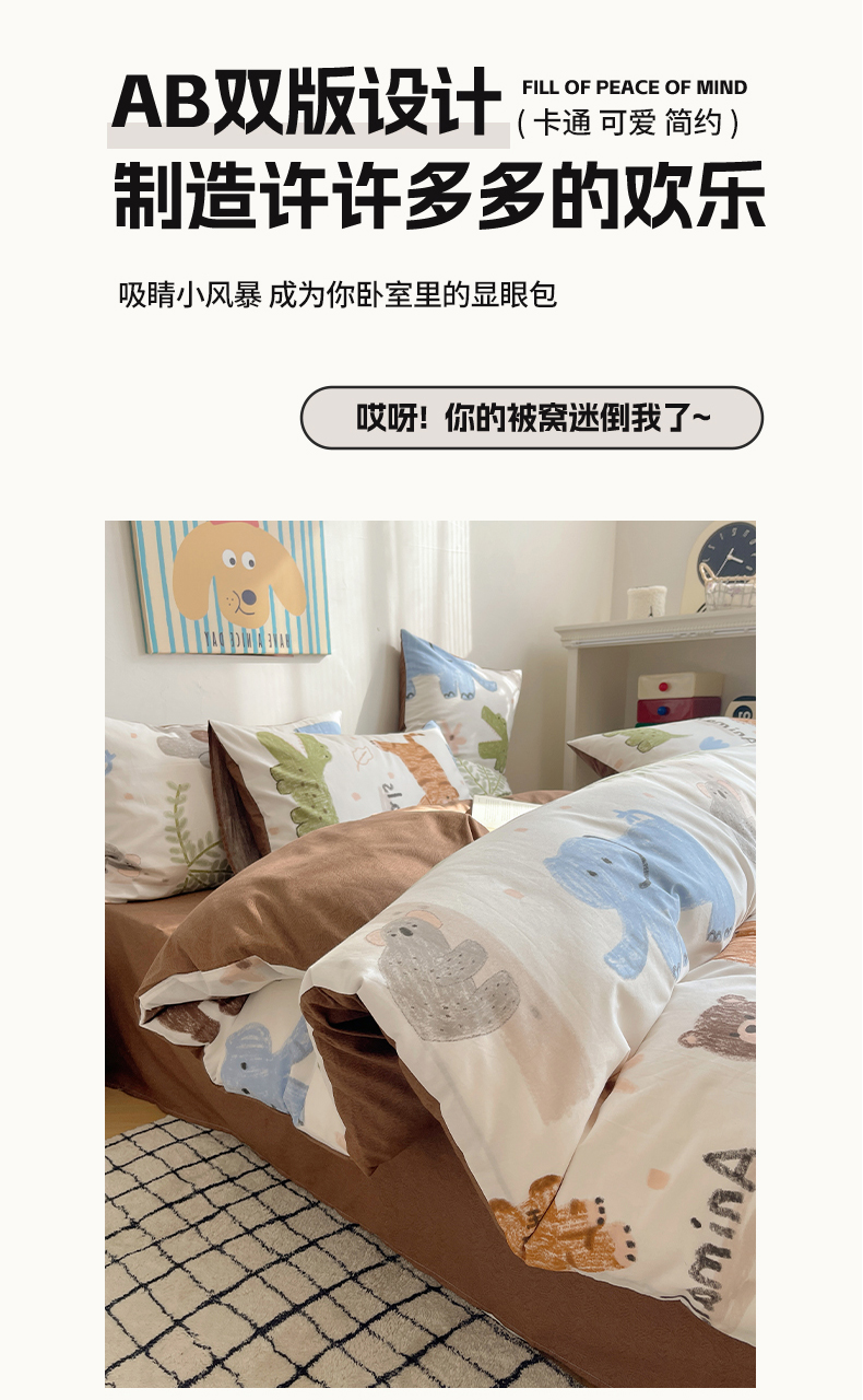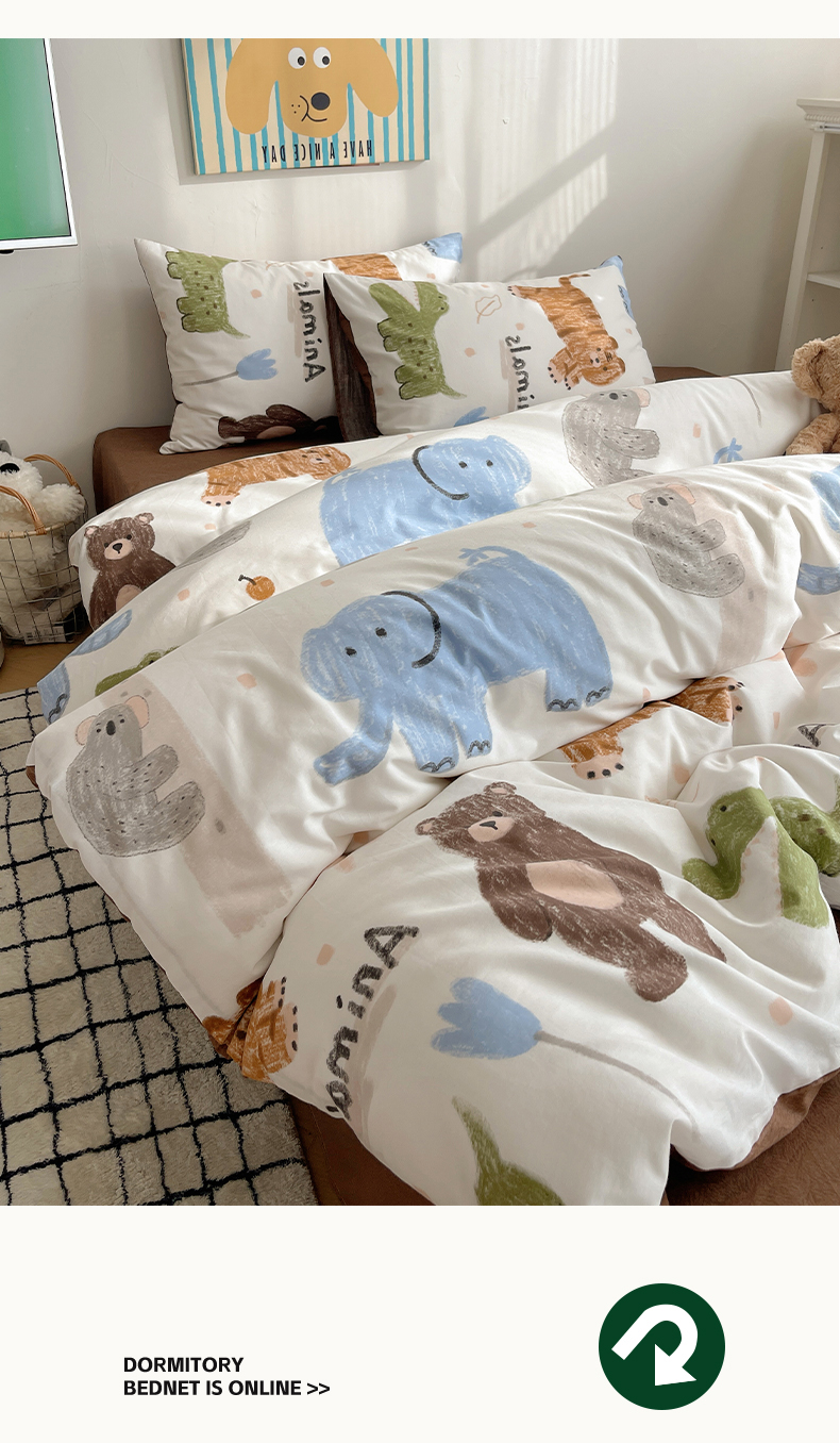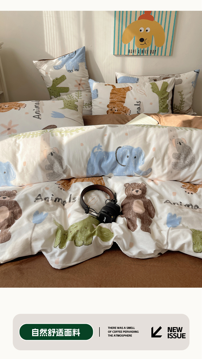希文 2024新款全棉卡通印花四件套森林动物日