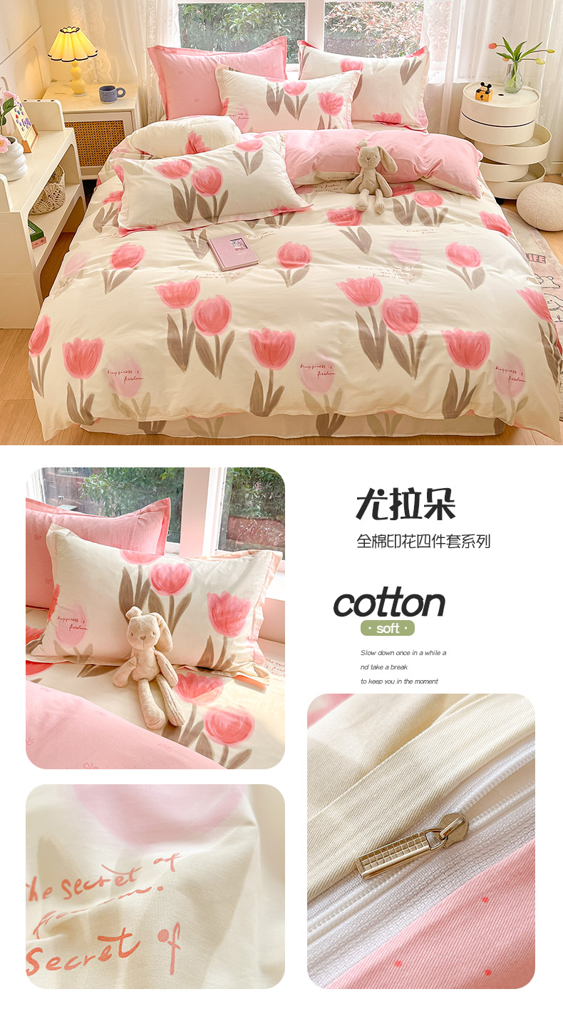 绵庭家纺 2024新款AB版全棉印花系列四件套 尤拉朵