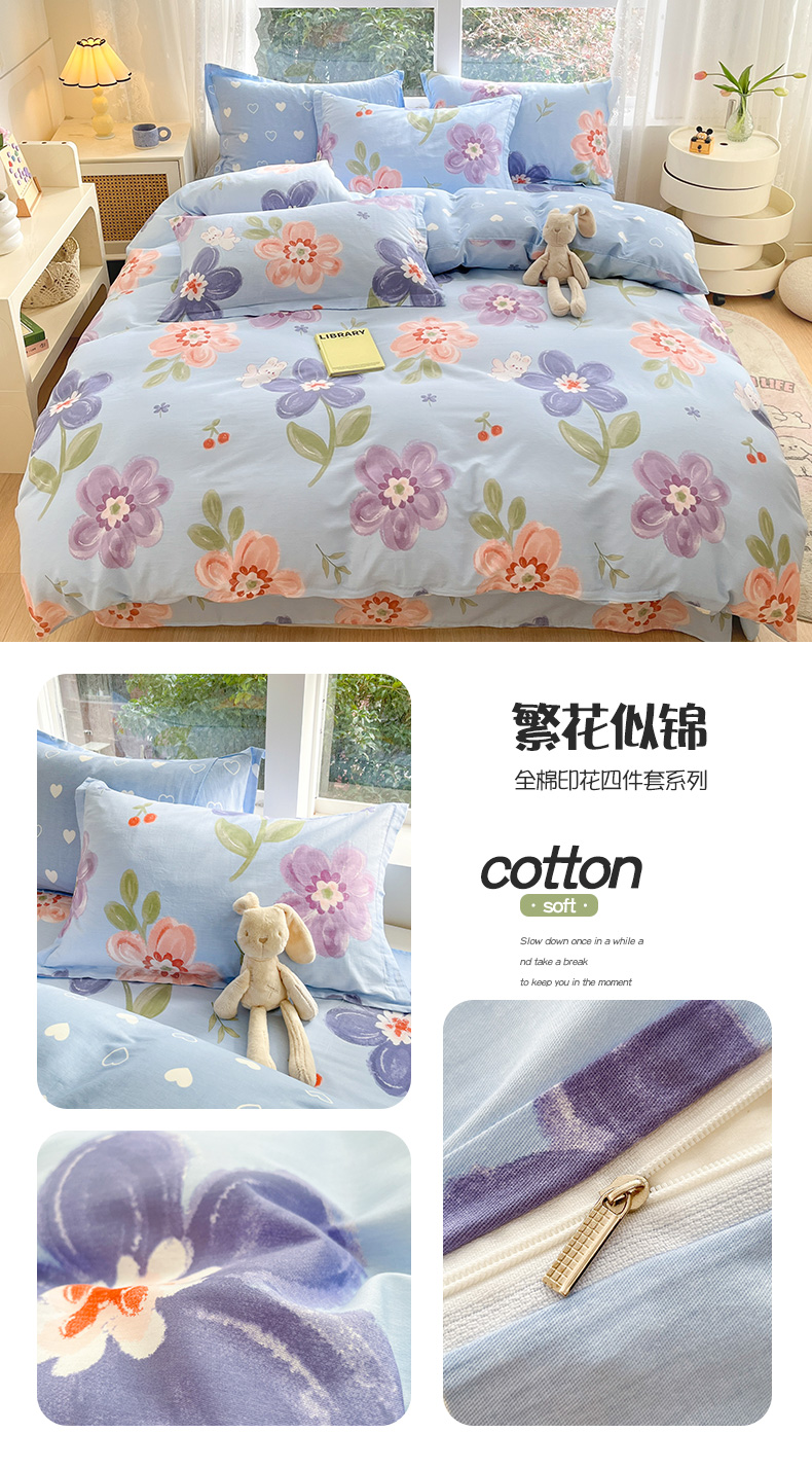 绵庭家纺 2024新款AB版全棉印花系列四件套 繁花似锦
