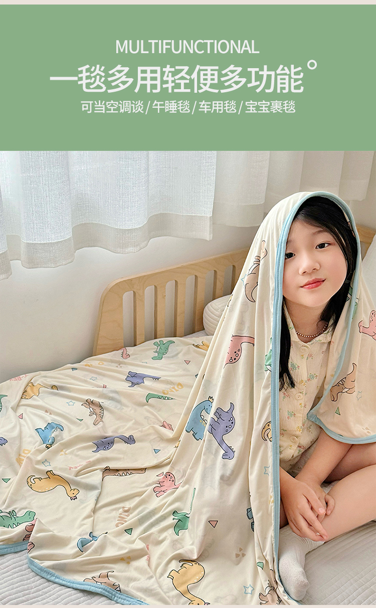 嗨生活 2025新款婴儿裸睡级凉感针织毯 幼儿园夏被 儿童夏被 毯子 直播 微商 电商 好货推荐产品 多彩恐龙