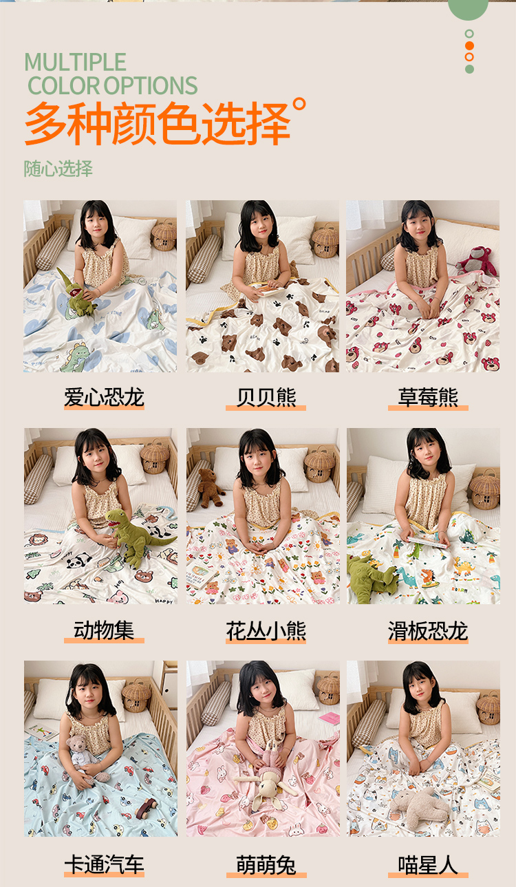 (总)嗨生活 2025新款全棉双层纱豆豆被 儿童被 春秋被 冬被 幼儿园被子,草莓兔兔,花丛小兔,米菲兔,汽车乐园,挖机恐龙,玩具屋,小海豚,熊猫盼盼