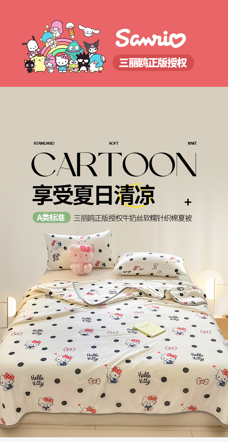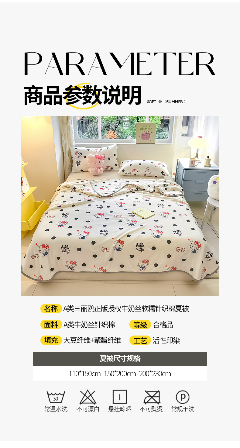 商品名称:(总)金爱家 2024新款A类三丽鸥正版授权高品质牛奶丝软糯针织棉夏被系列