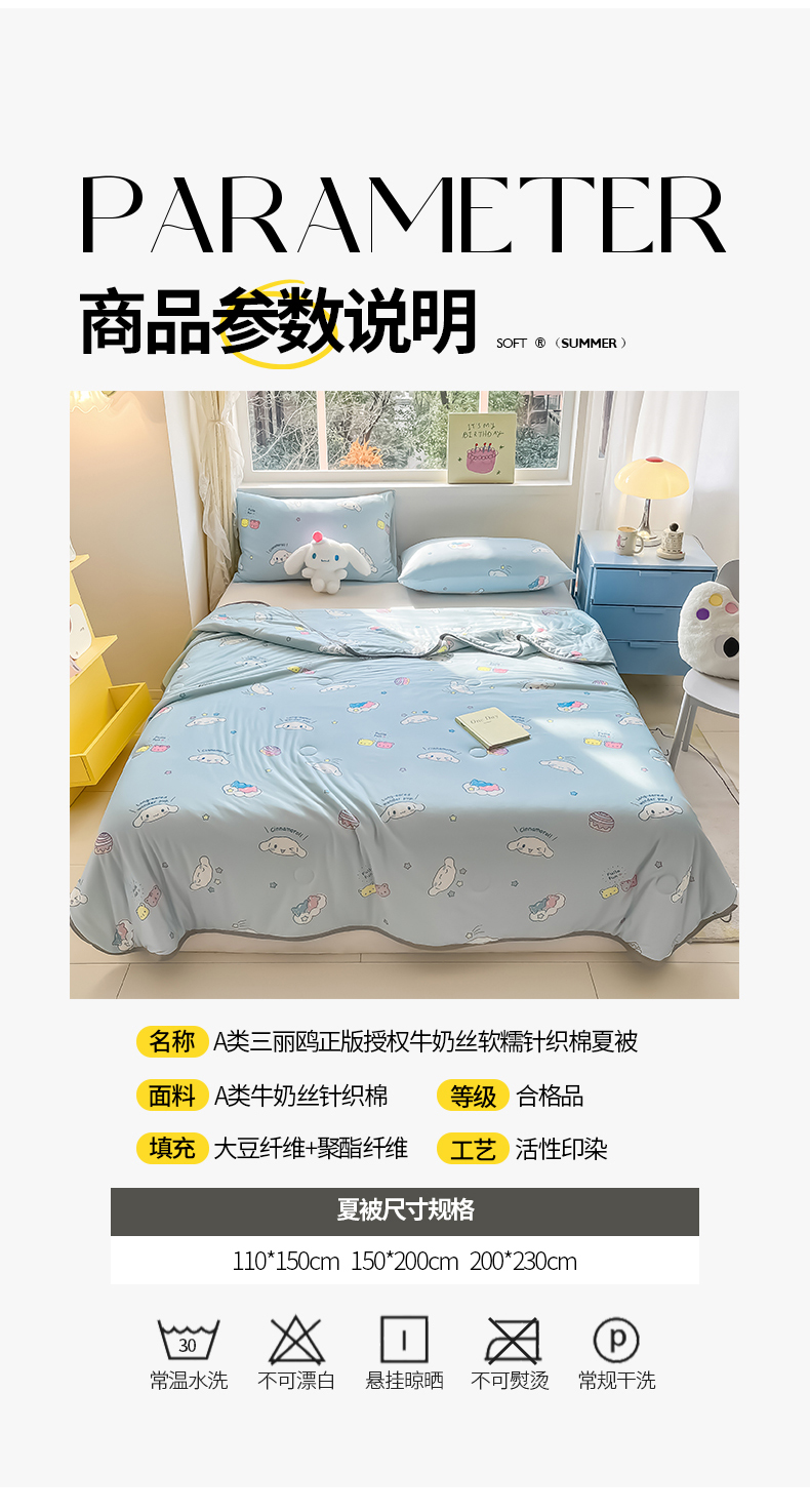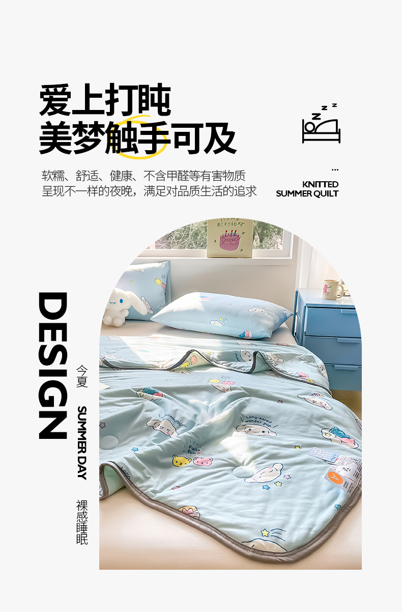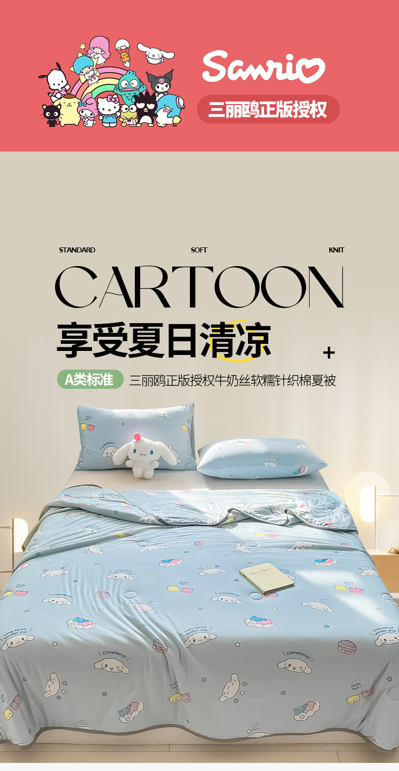 • 91家纺网 家纺一手货源 找家纺 金爱家 2024新款A类三丽鸥正版授权高品质牛奶丝软糯针织棉夏被系列 针织棉三丽鸥-可爱玉桂狗