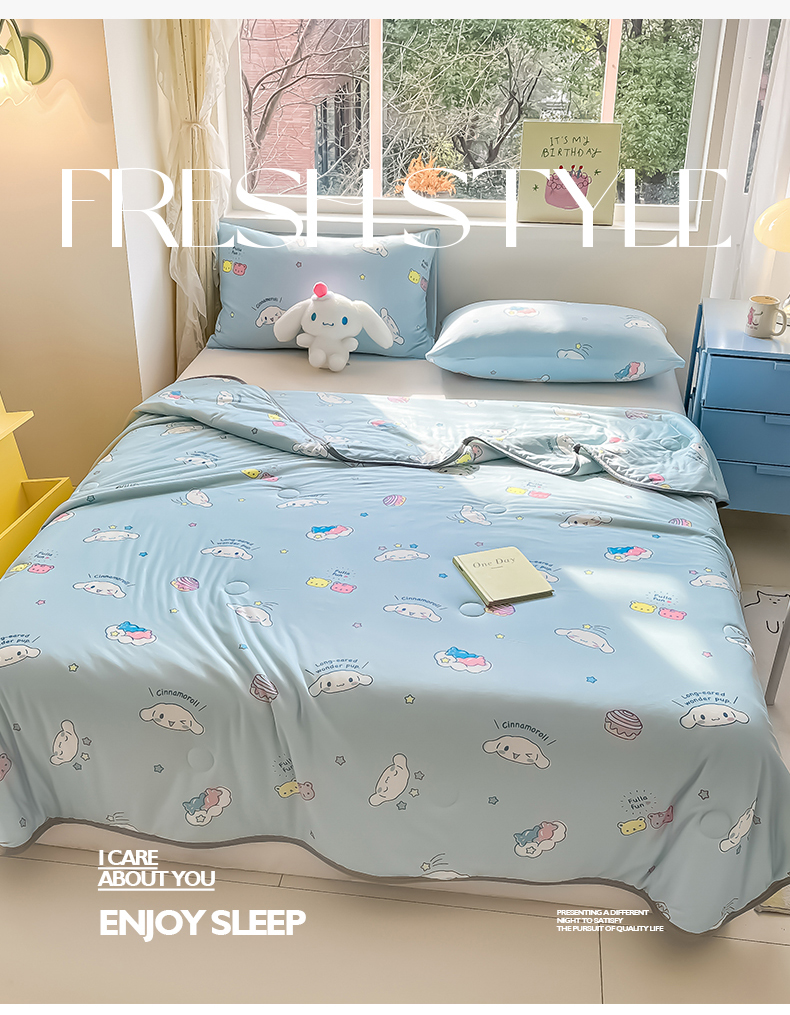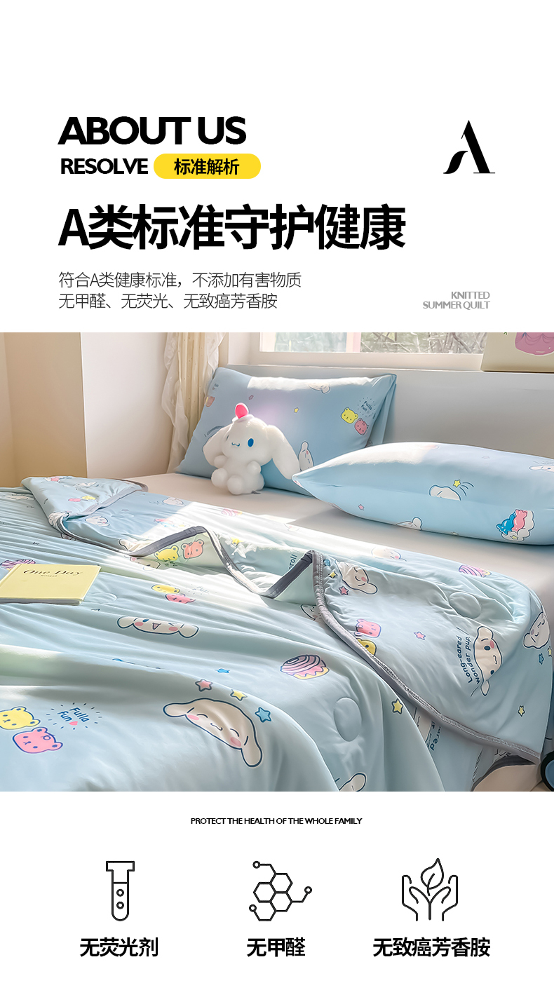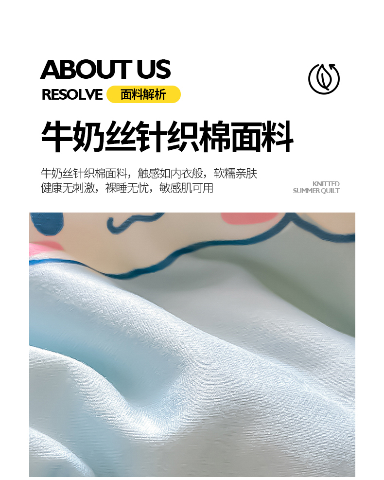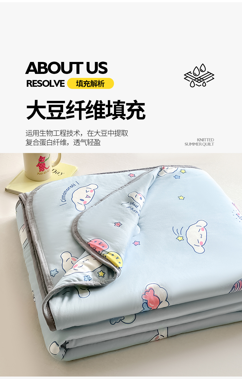 • 91家纺网 家纺一手货源 找家纺 金爱家 2024新款A类三丽鸥正版授权高品质牛奶丝软糯针织棉夏被系列 针织棉三丽鸥-可爱玉桂狗