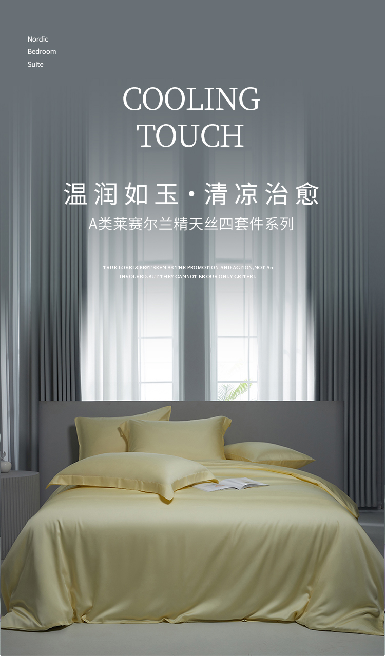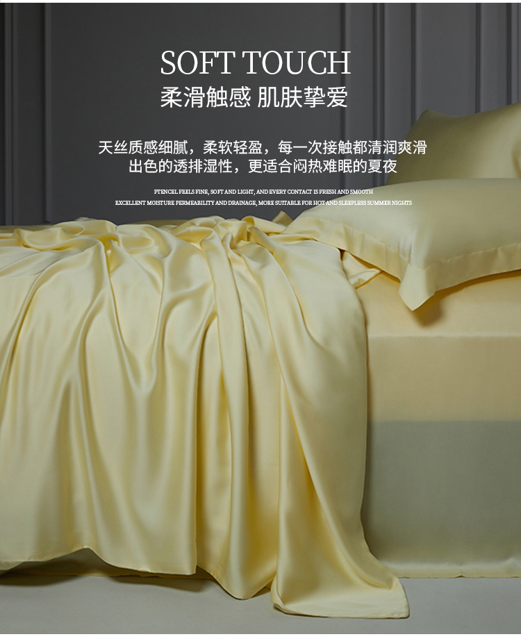 当前位置: 91家纺网 > 商品网购 > 床品套件 > 四件套 > 莱赛尔四件套 > 莱阁亿 2025新款莱赛尔兰精60支天丝纯色系列四件套 茉莉黄