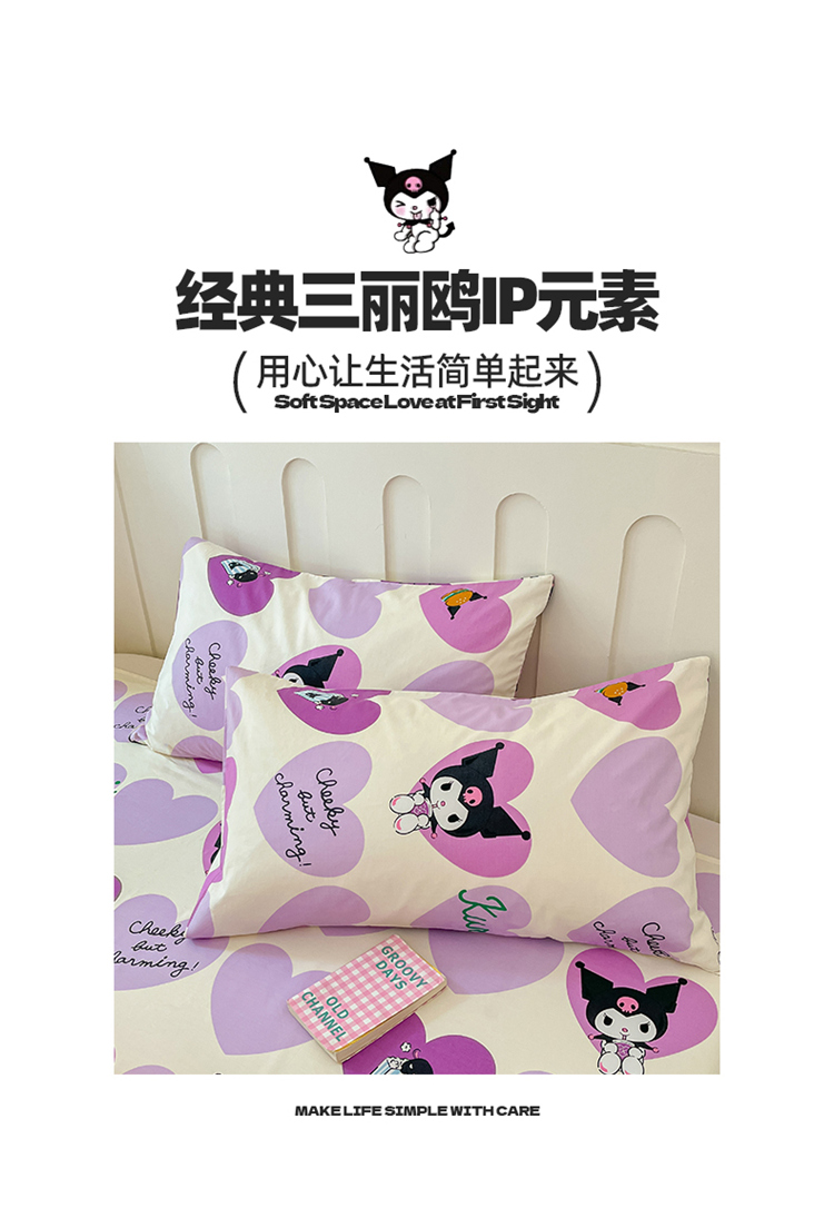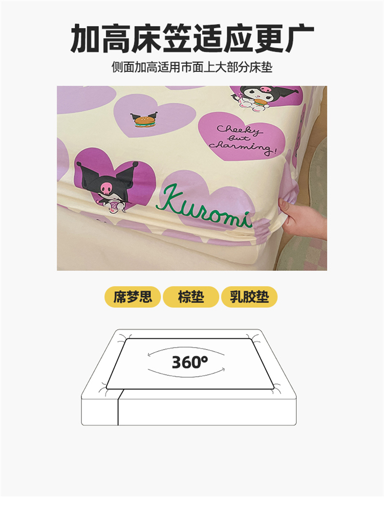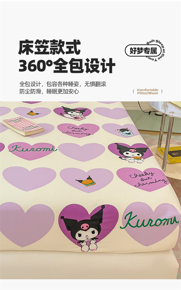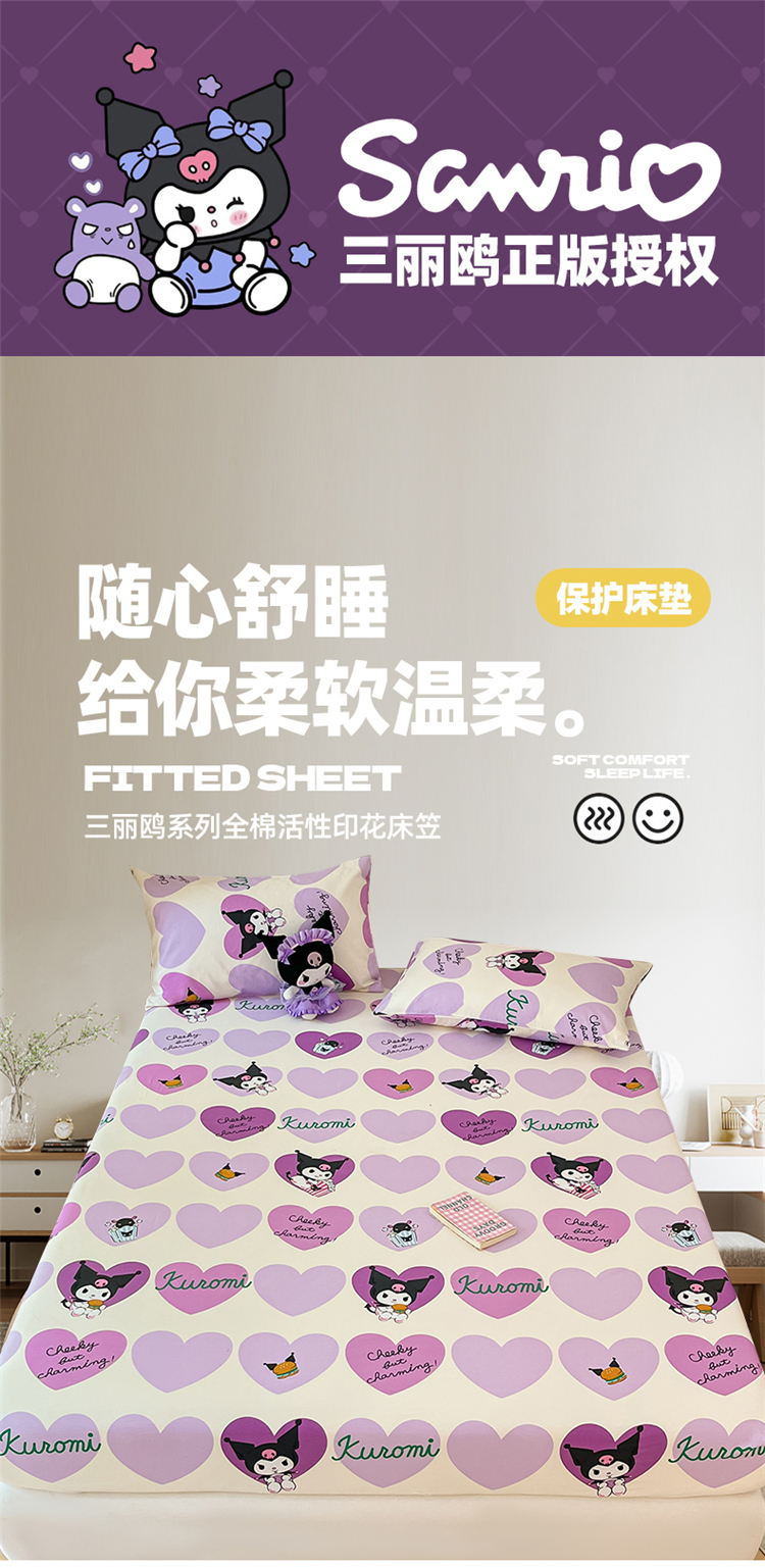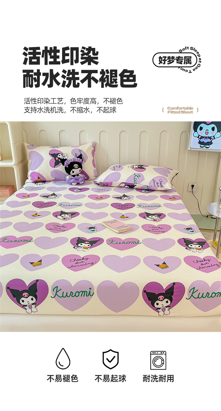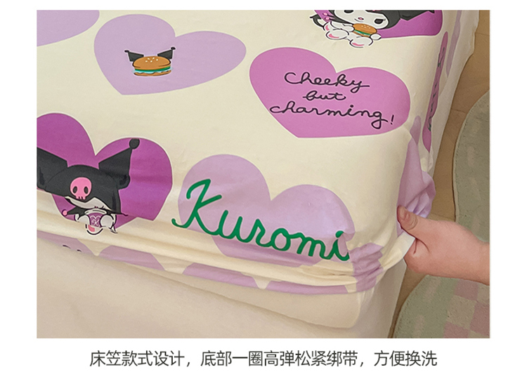 商品名称:博雅 2024新款三丽鸥正版授权全棉活性印花单床笠 心心库洛米