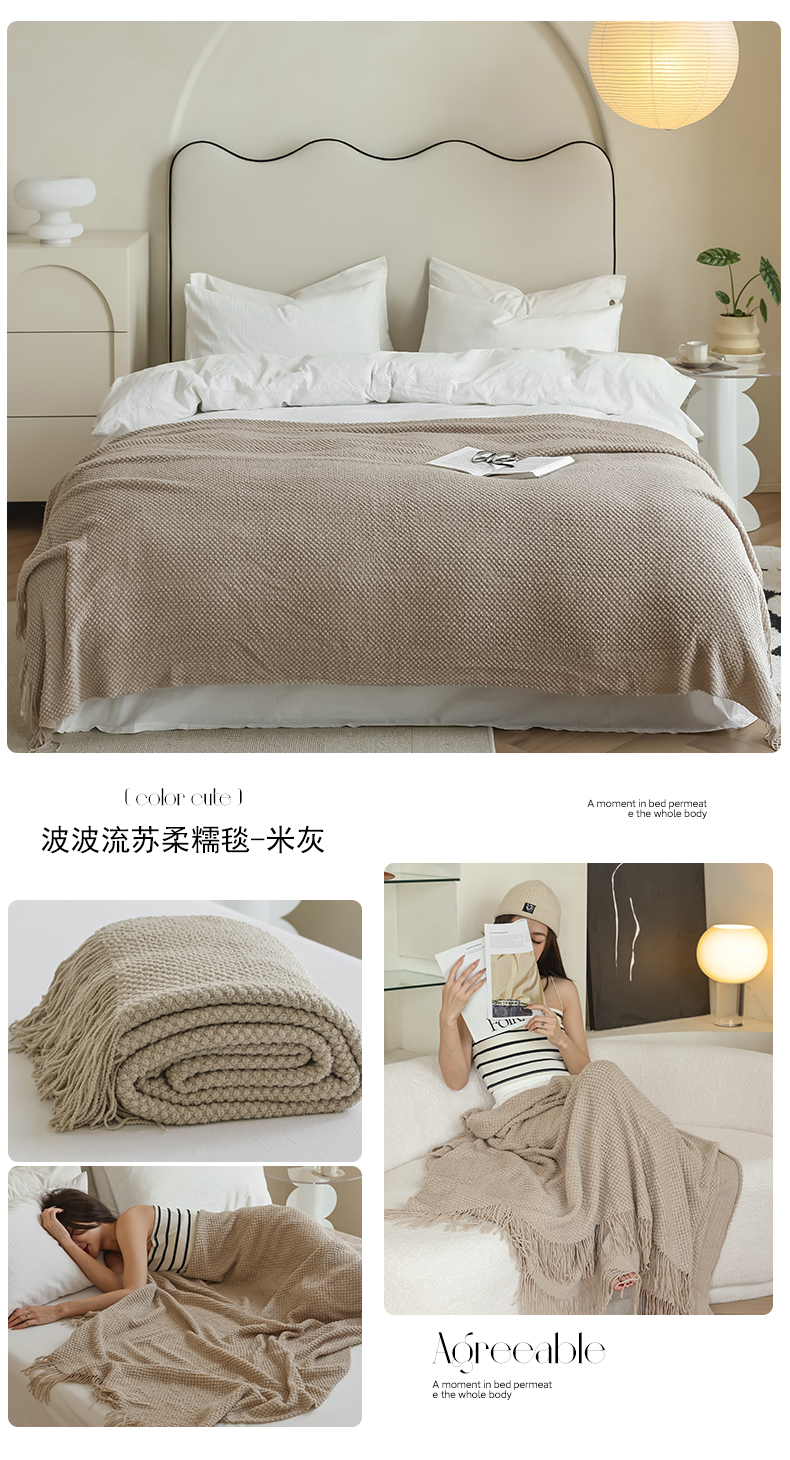 当前位置: 91家纺网 > 商品网购 > 毛毯休闲毯绒毯 > 毛毯 > 朴尔家纺-毛巾被 2024年新款波波风流苏柔糯毯床尾毯沙发巾 波波流苏柔糯毯-米灰