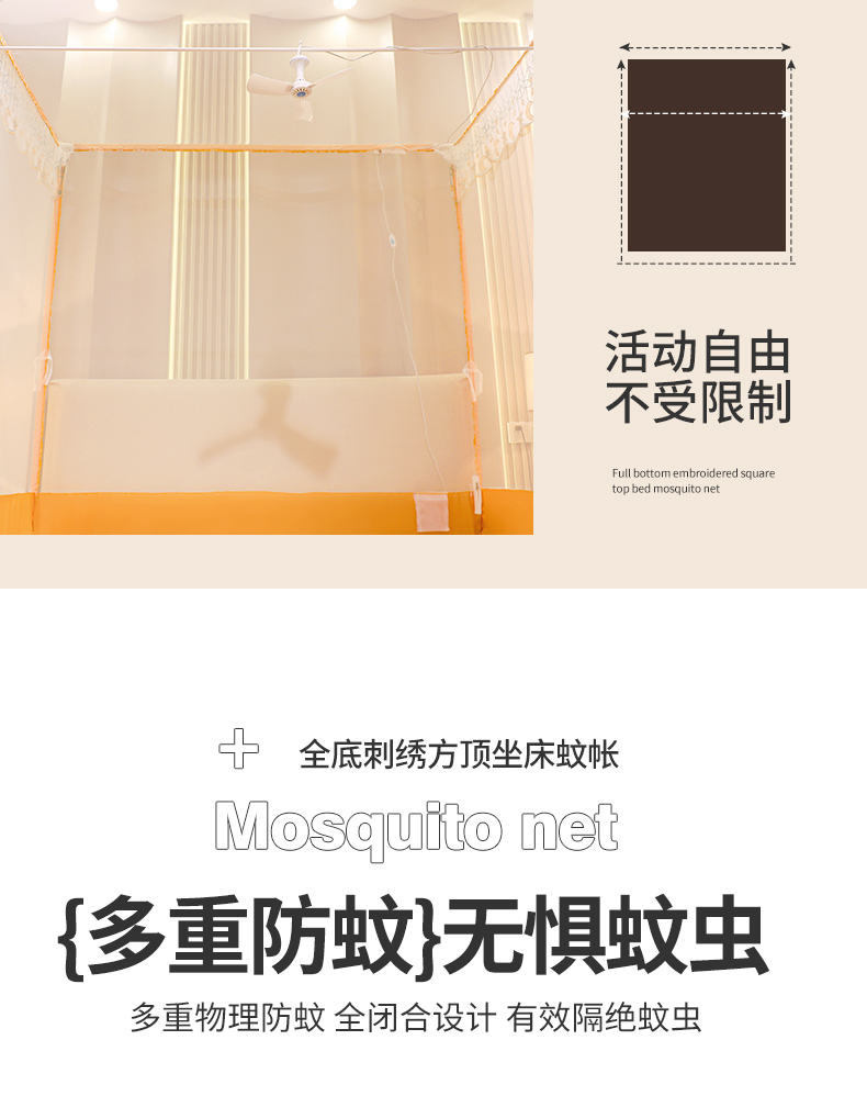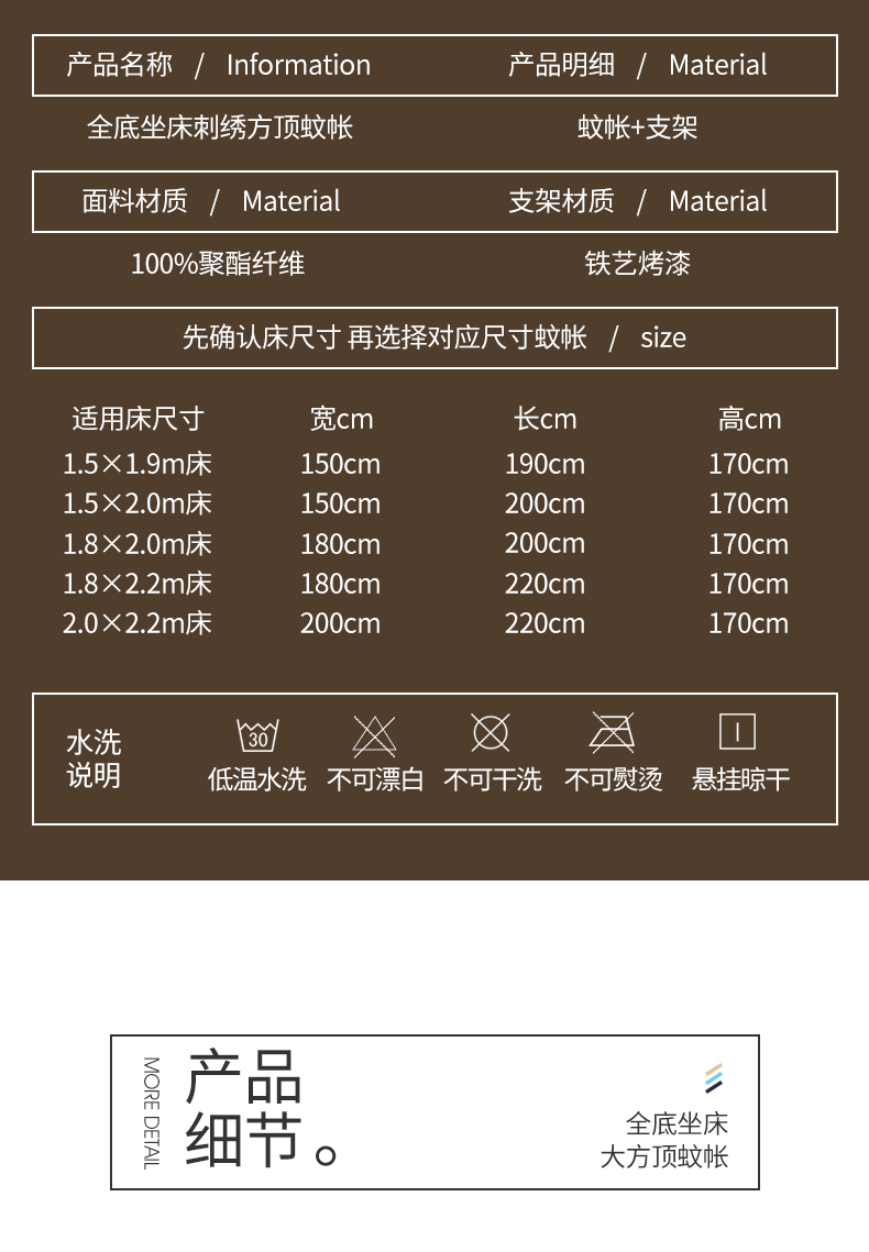 (总)博诺蚊帐 2024新款全底刺绣顶方 坐床蚊帐
