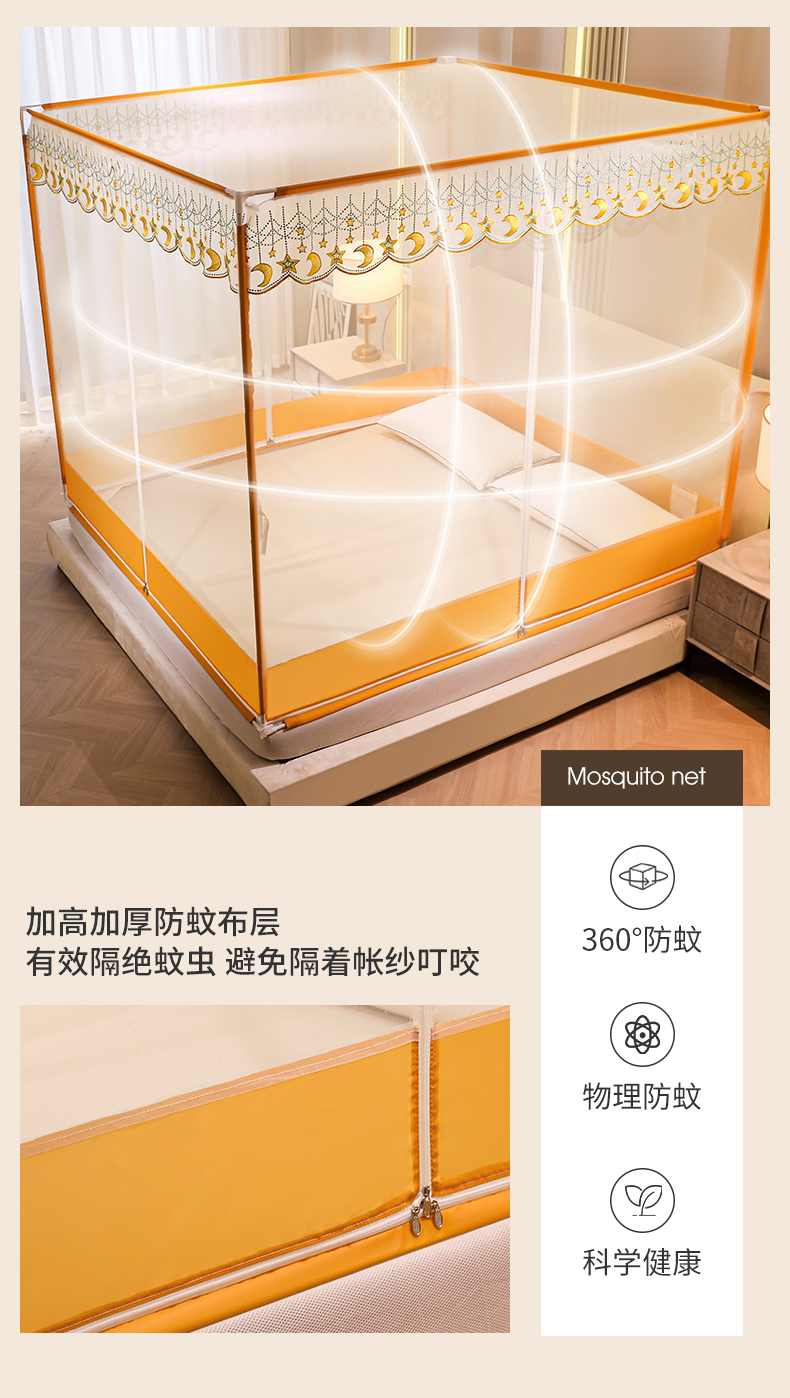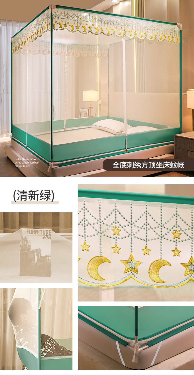 (总)博诺蚊帐 2022新款全底防摔坐床烤漆刺绣蚊帐,福黛墨绿,福黛浅驼,福黛深红,飘羽咖啡,飘羽墨绿,飘羽氧气绿