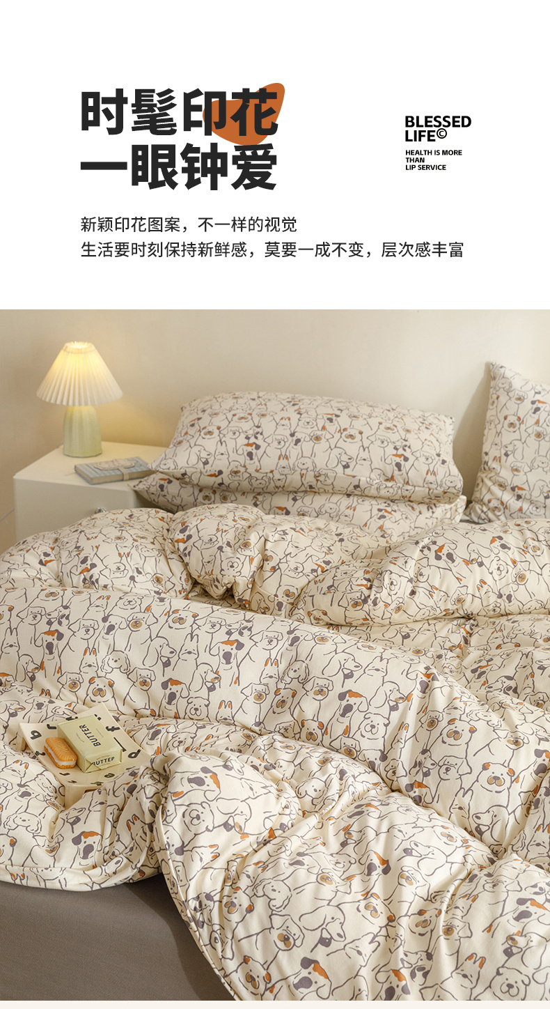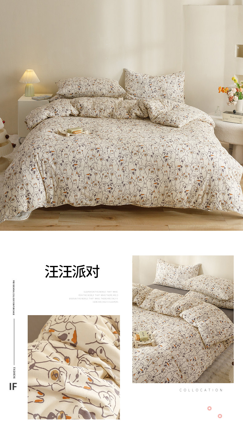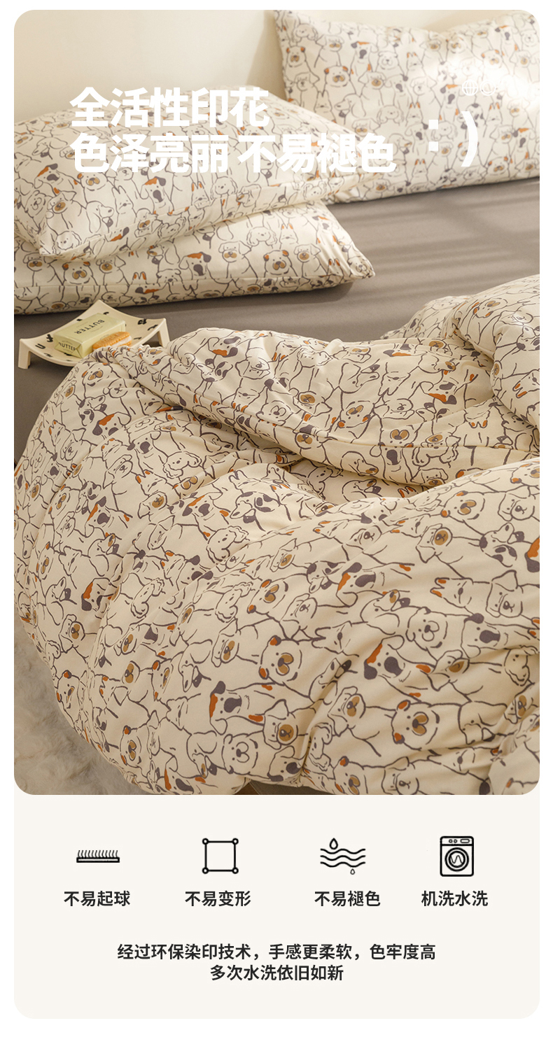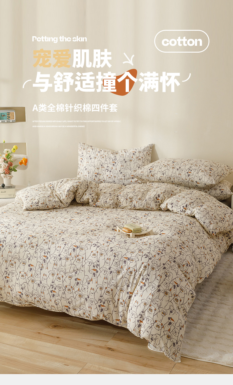 商品名称:瑞米家居 2024新款A类全棉针织棉四件套 汪汪派对