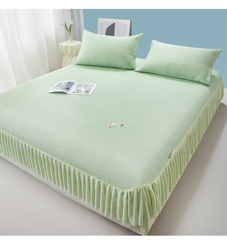 (总)凉百百 2024新款凉豆豆大方豆床裙凉席冰丝凉席可水洗机洗源头厂家直发,大方豆床单-粉,大方豆床单-灰,大方豆床单-咖,大方豆床单-蓝,大方豆床单-绿