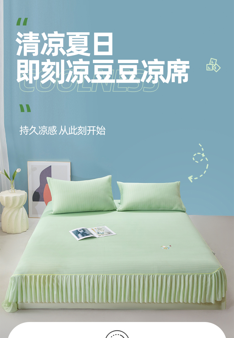 (总)凉百百 2024新款凉豆豆斜纹床单床裙款凉席