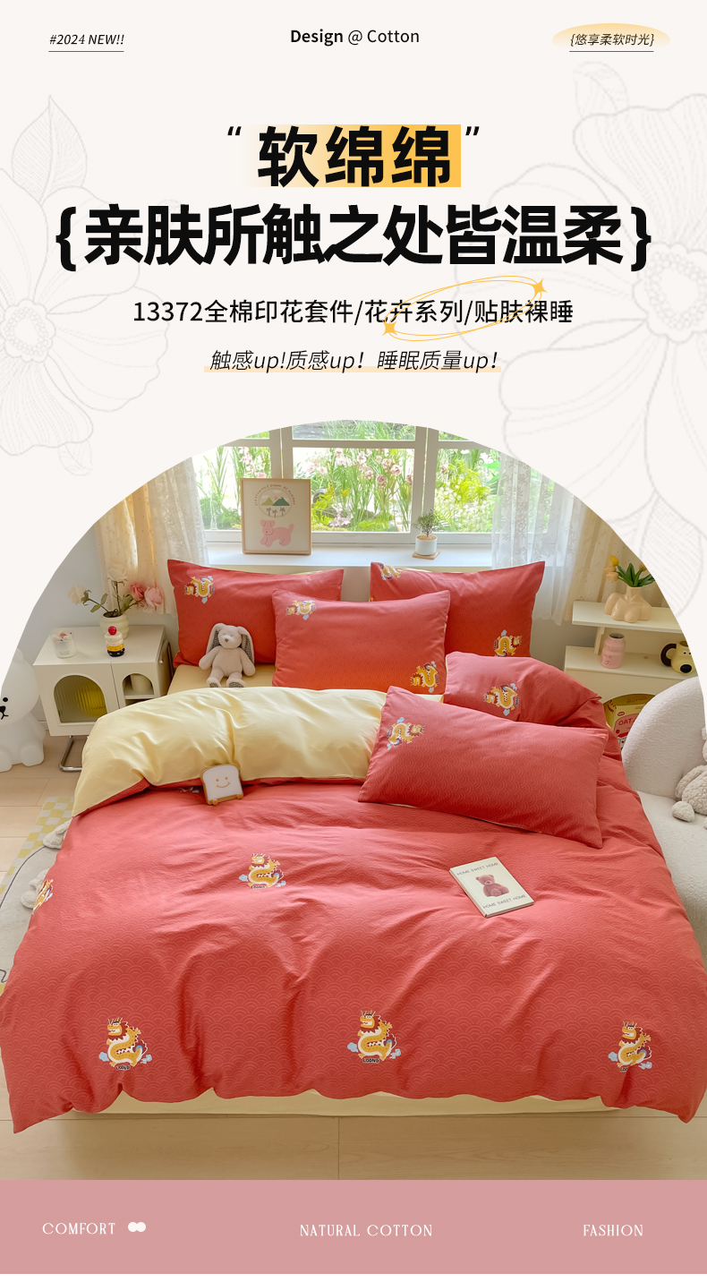 商品名称:芊寻家居 2024新款全棉13372花卉系列四件套 龙瑞