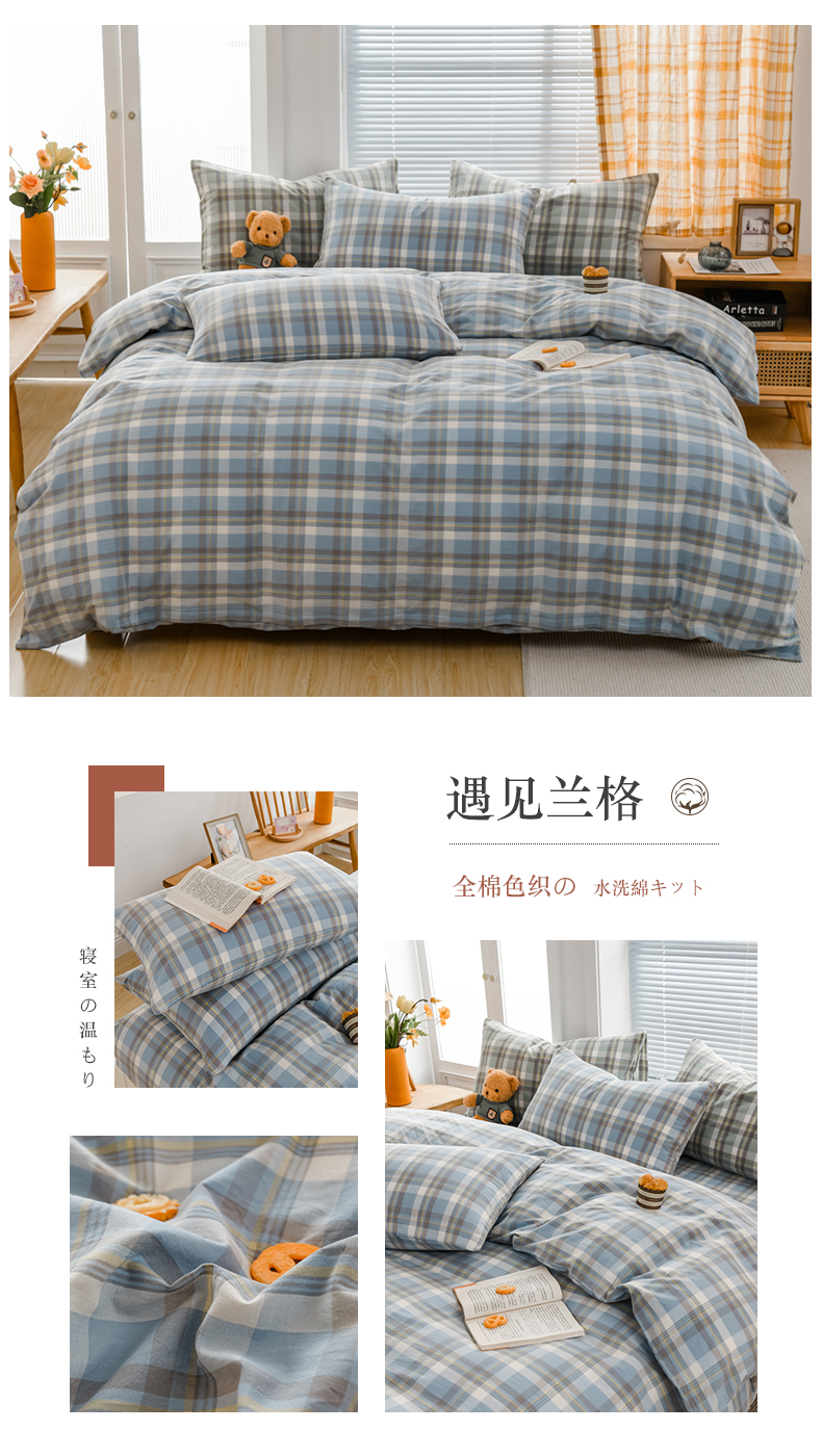 当前位置: 91家纺网 > 商品网购 > 床品套件 > 四件套 > 水洗棉四件套 > 柠萌家居 2024新款A类全棉色织水洗棉无印风四件套 遇见兰格