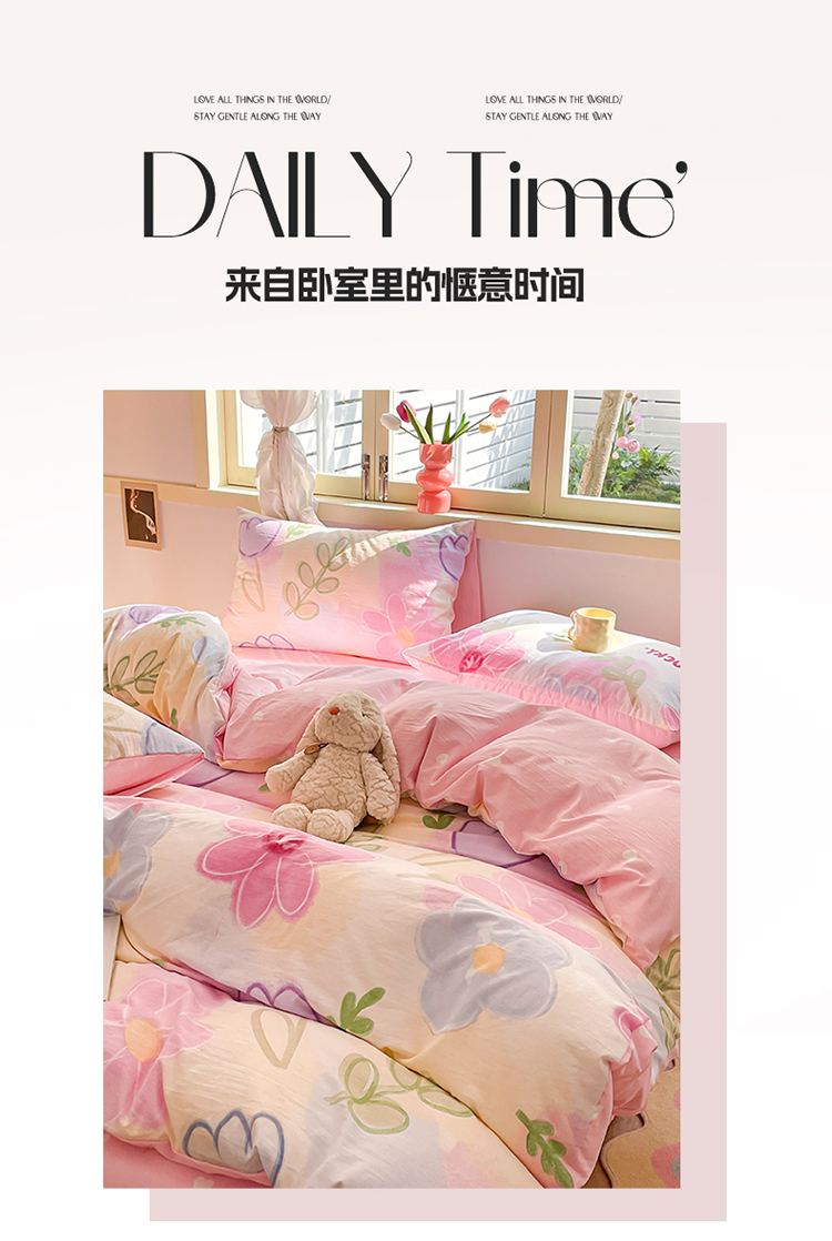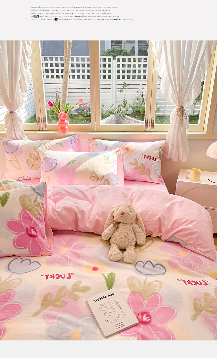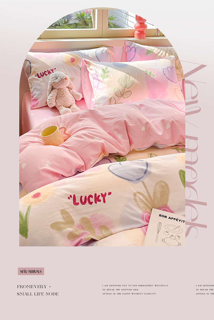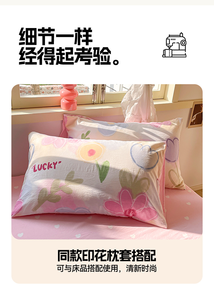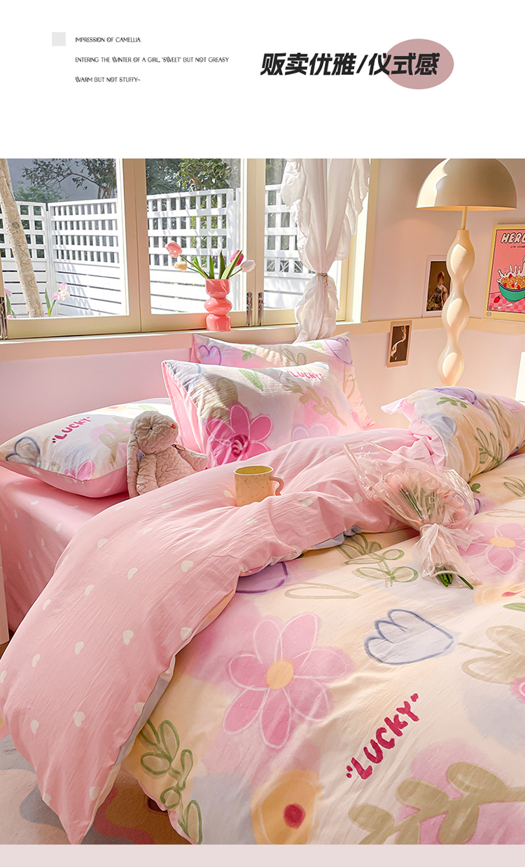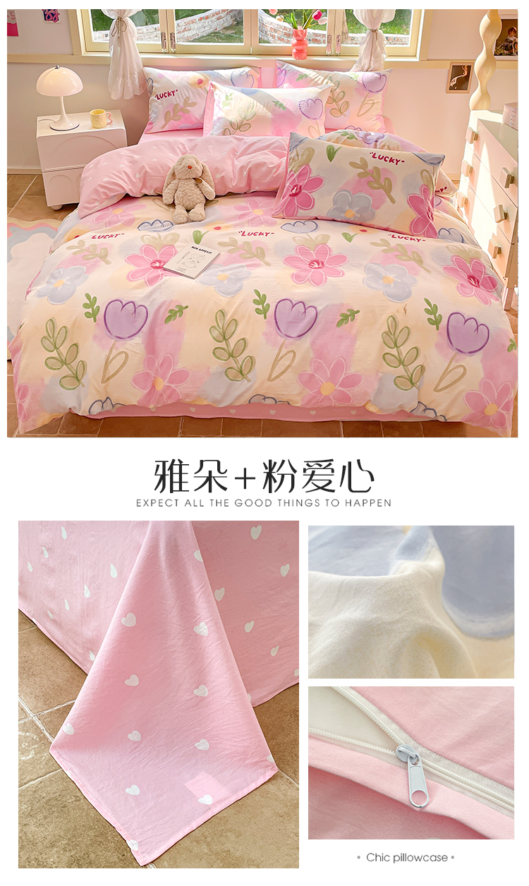 当前位置: 91家纺网 > 商品网购 > 床品套件 > 四件套 > 水洗棉四件套 > 盛秋家纺 2026新款水洗棉印花四件套-卡通系列 雅朵+粉爱心