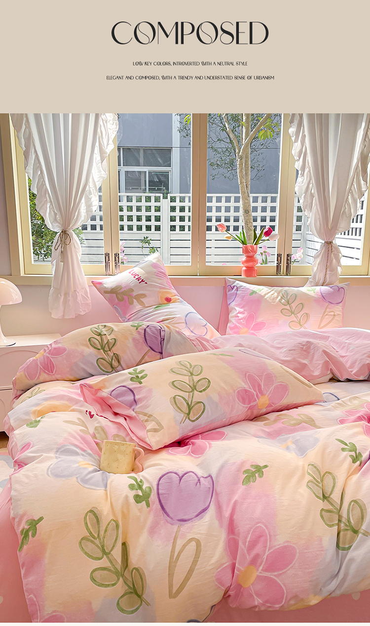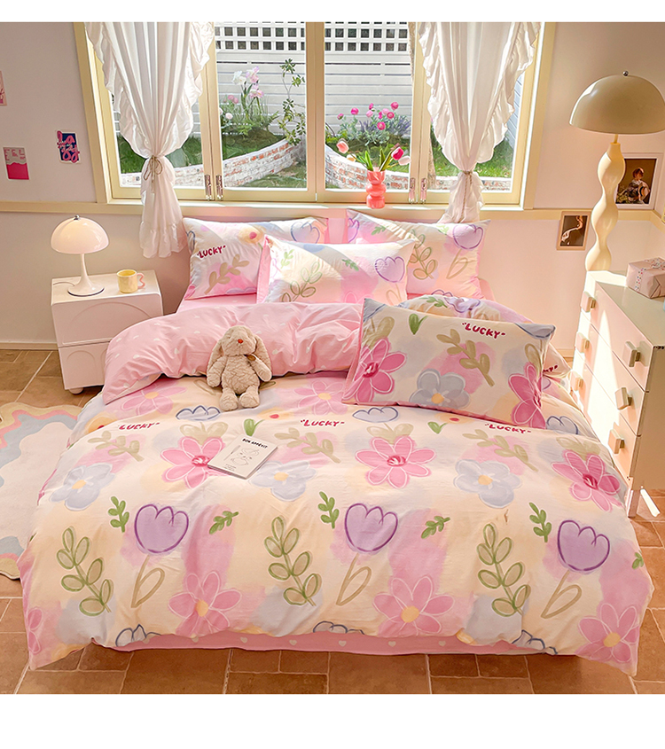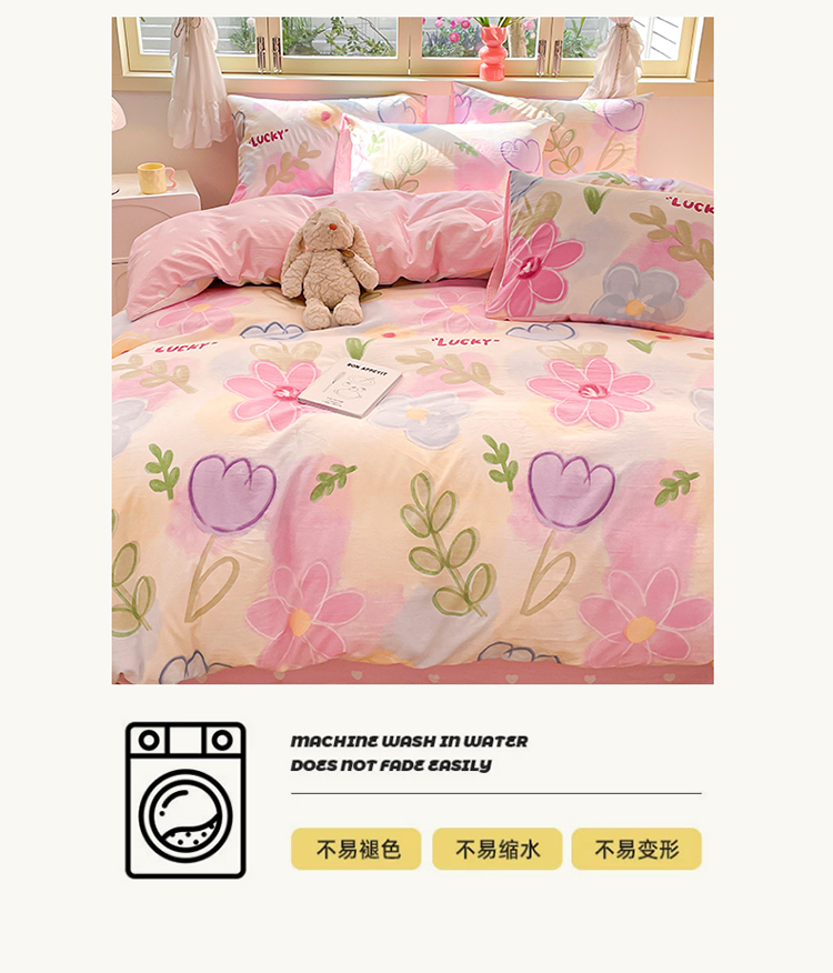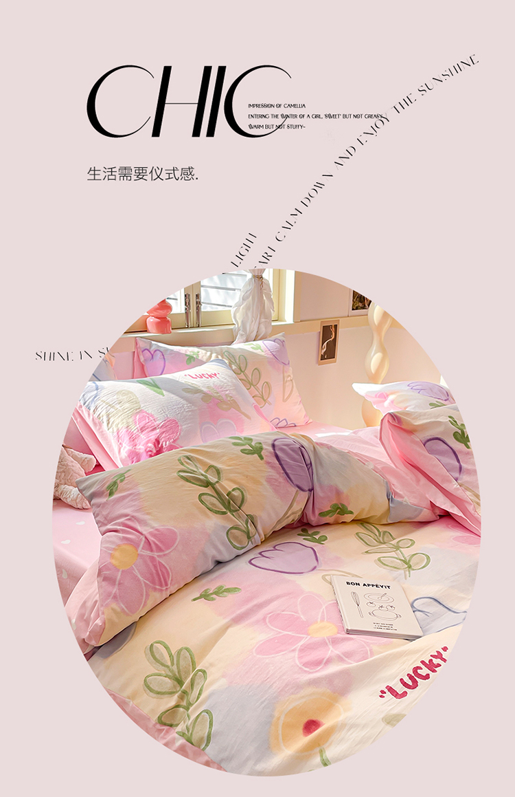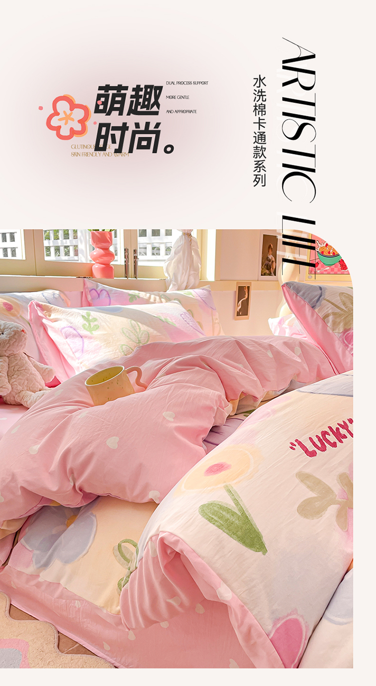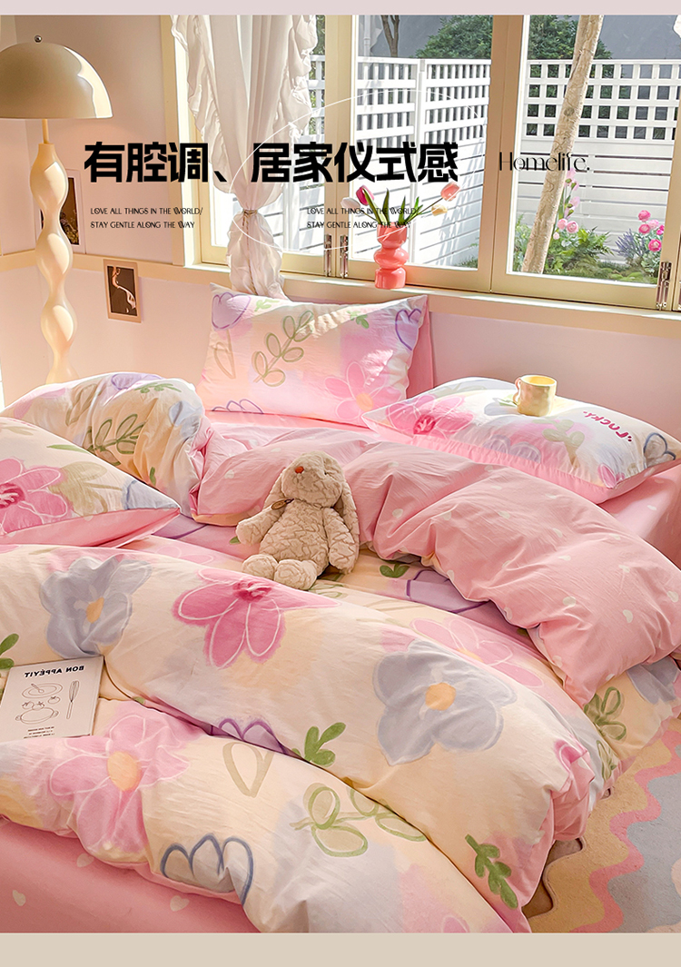 当前位置: 91家纺网 > 商品网购 > 床品套件 > 四件套 > 水洗棉四件套 > 盛秋家纺 2026新款水洗棉印花四件套-卡通系列 雅朵+粉爱心