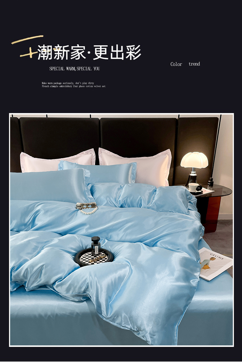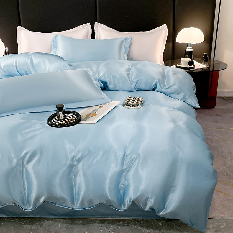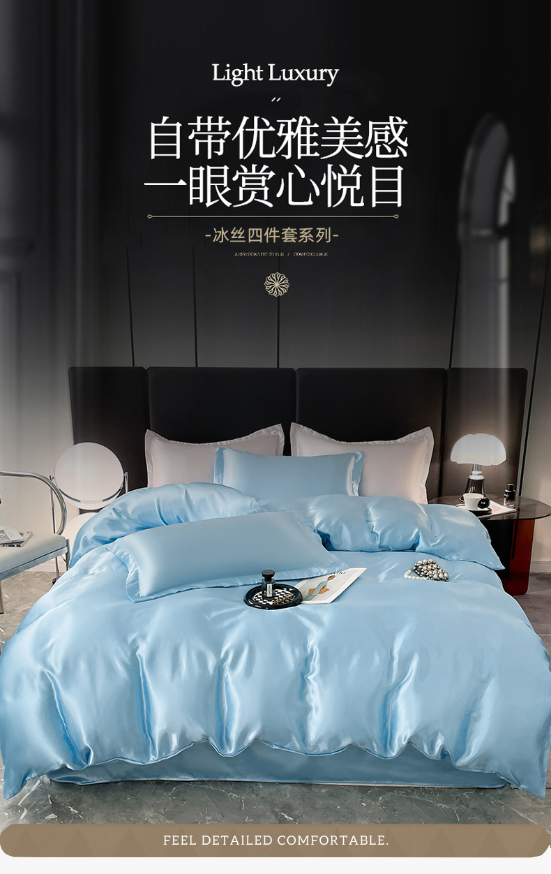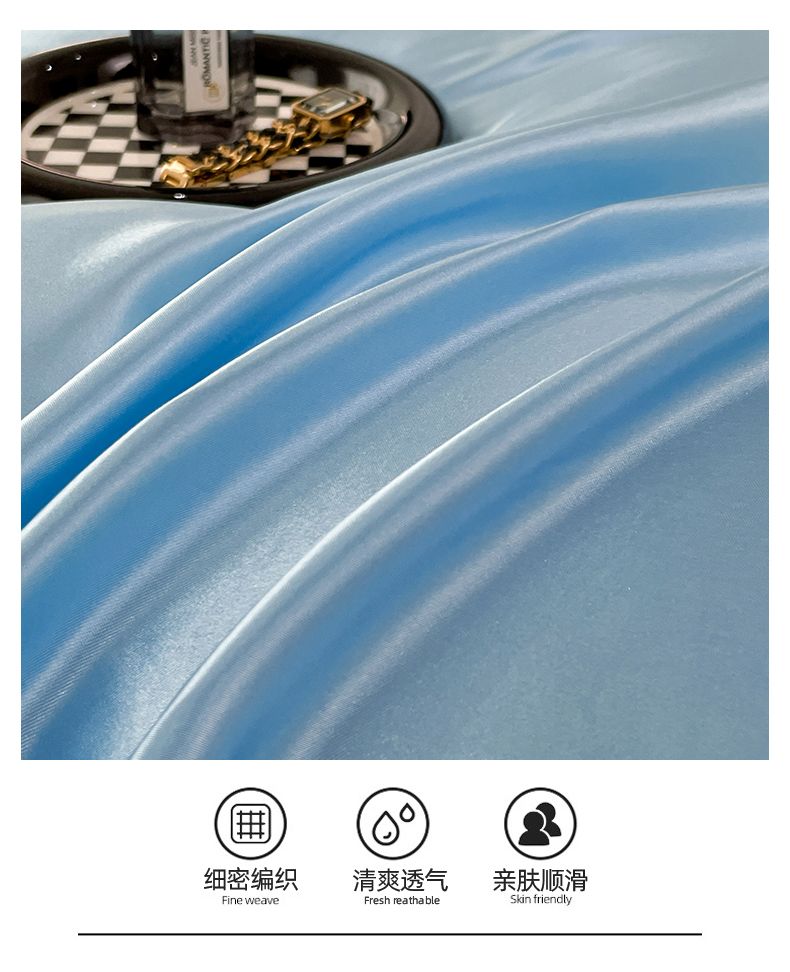 当前位置: 91家纺网 > 商品网购 > 床品套件 > 四件套 > 其它四件套 > 圣比熊 2025新款可水洗冰丝被套床单枕套夏季四件套 天空蓝