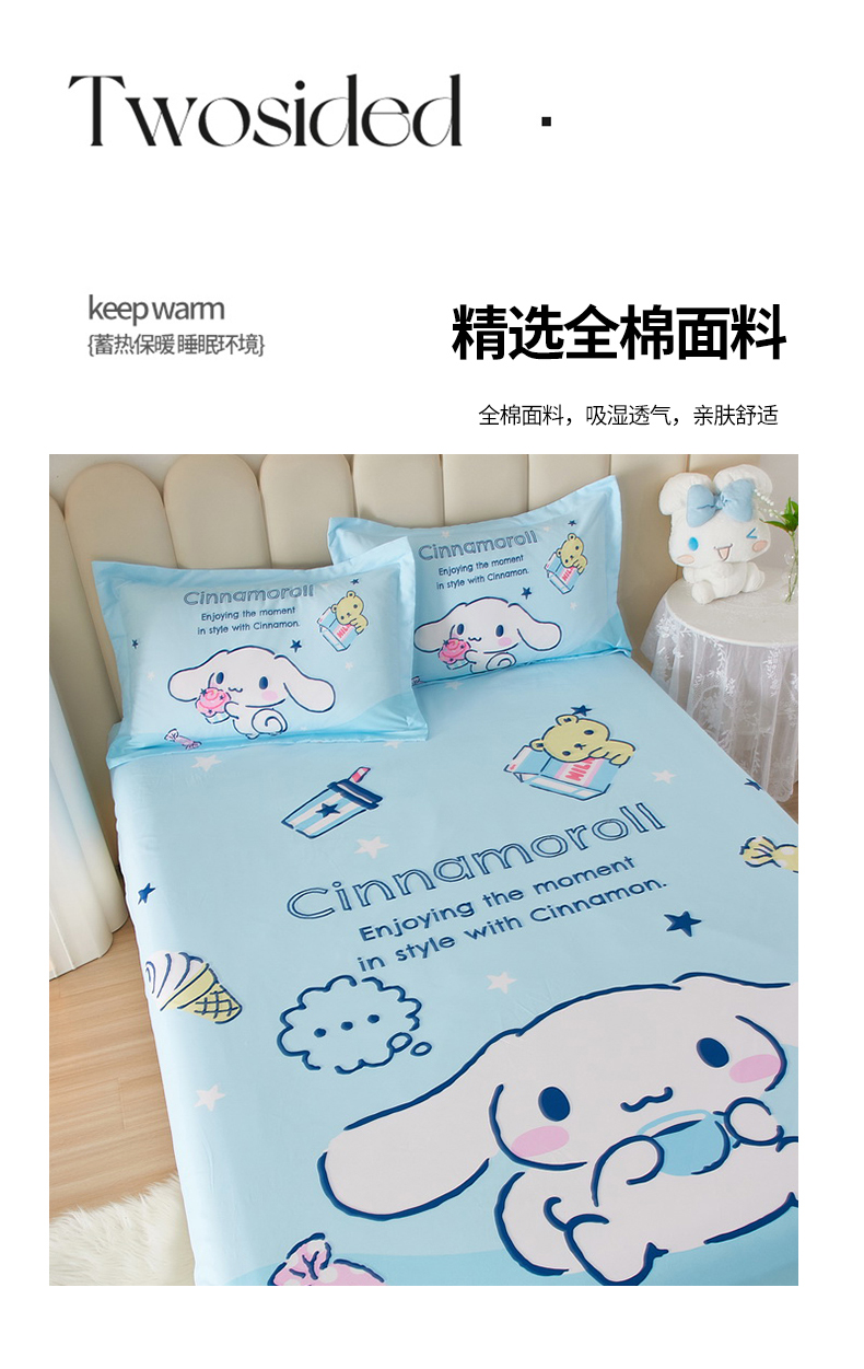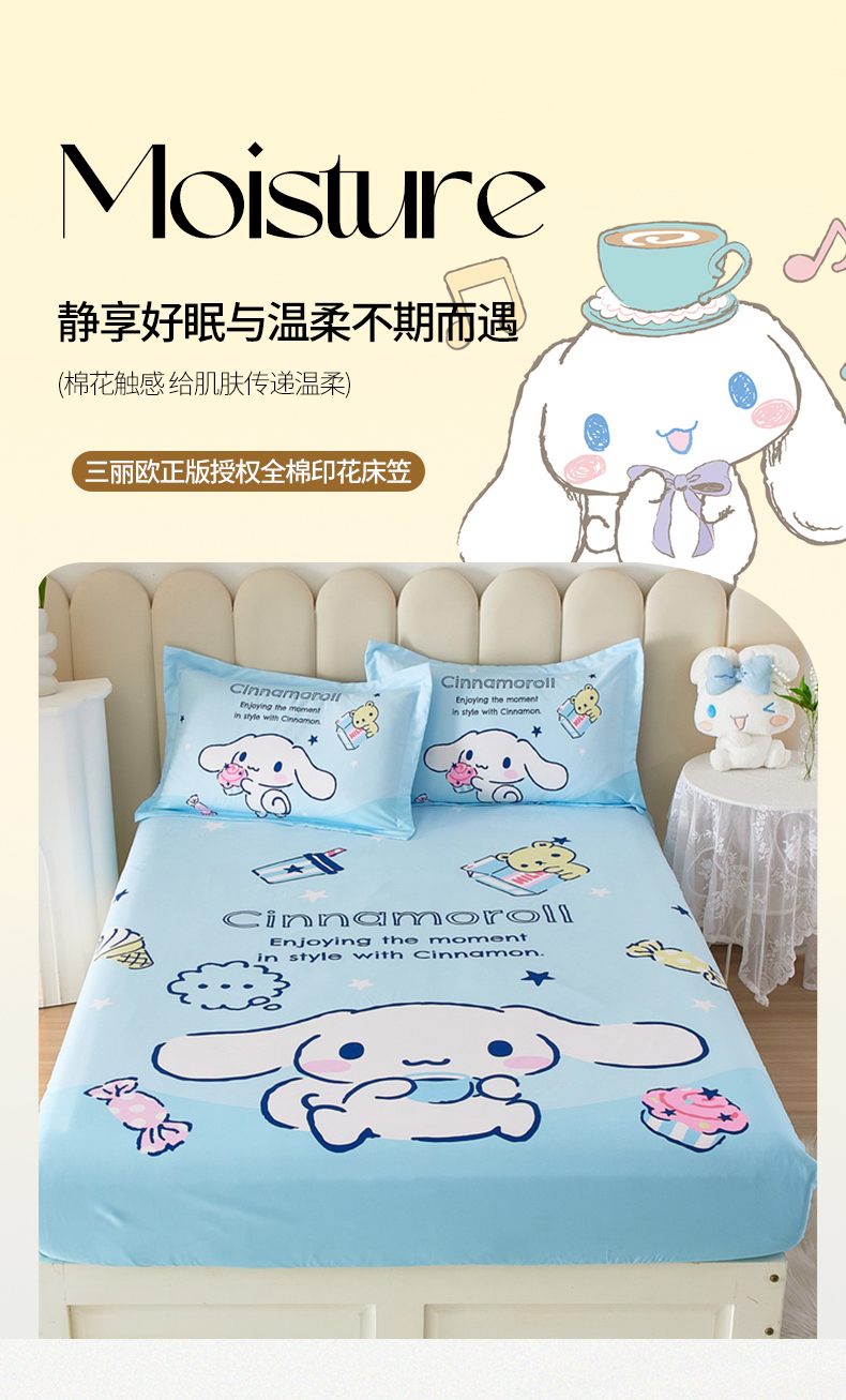 蘭菲家纺 2024新款全棉大版三丽鸥卡通单床笠 吃货