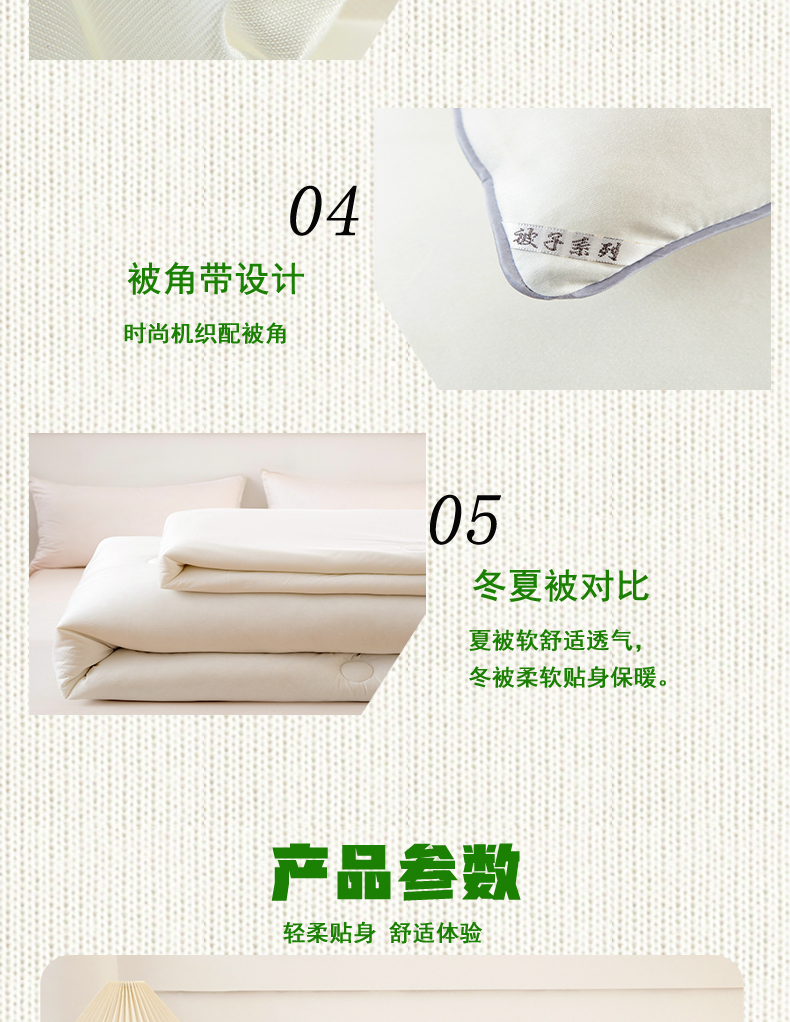 [{"sp_id":11,"sp_name":"\u989c\u8272\u5206\u7c7b","sp_format":2,"sp_list":[{"sp_value_id":640,"sp_value_name":"\u7c73\u767d\u8272","sp_value_image":{"id":999,"path":"https:\/\/img3.91jf.com\/ghelp\/2024\/20240401\/40eb276e-835e-4e31-828e-0e87eed2f17920240401113944386.jpg_30_30.jpg"},"sp_value_video":{"id":0,"img":"","path":"","time":0,"download_num":0,"play_num":0},"price":"55.00","storage":2200,"weight":"1.100","is_check_weight":0,"plus_price":"","sp_sort":9}]},{"sp_id":27,"sp_name":"\u5c3a\u5bf8","sp_format":1,"sp_list":[{"sp_value_id":315,"sp_value_name":"150*200cm\u590f\u88ab","sp_value_image":{"id":0,"path":""},"sp_value_video":{"id":0,"img":"","path":"","time":0,"download_num":0,"play_num":0},"price":"55.00","storage":100,"weight":"1.100","is_check_weight":0,"plus_price":"","sp_sort":18},{"sp_value_id":319,"sp_value_name":"150x200cm\u6625\u79cb\u88ab3.2\u65a4","sp_value_image":{"id":0,"path":""},"sp_value_video":{"id":0,"img":"","path":"","time":0,"download_num":0,"play_num":0},"price":"60.00","storage":100,"weight":"1.600","is_check_weight":0,"plus_price":"","sp_sort":22},{"sp_value_id":323,"sp_value_name":"150*200cm\u6625\u79cb\u88ab4.2\u65a4","sp_value_image":{"id":0,"path":""},"sp_value_video":{"id":0,"img":"","path":"","time":0,"download_num":0,"play_num":0},"price":"67.00","storage":100,"weight":"2.100","is_check_weight":0,"plus_price":"","sp_sort":26},{"sp_value_id":1428,"sp_value_name":"150*200cm\u51ac\u88ab5\u65a4","sp_value_image":{"id":0,"path":""},"sp_value_video":{"id":0,"img":"","path":"","time":0,"download_num":0,"play_num":0},"price":"73.00","storage":100,"weight":"2.500","is_check_weight":0,"plus_price":"","sp_sort":29},{"sp_value_id":1444,"sp_value_name":"150*200cm\u51ac\u88ab6\u65a4","sp_value_image":{"id":0,"path":""},"sp_value_video":{"id":0,"img":"","path":"","time":0,"download_num":0,"play_num":0},"price":"79.00","storage":100,"weight":"3.000","is_check_weight":0,"plus_price":"","sp_sort":29},{"sp_value_id":790,"sp_value_name":"150*200cm\u52a0\u539a\u51ac\u88ab7\u65a4","sp_value_image":{"id":0,"path":""},"sp_value_video":{"id":0,"img":"","path":"","time":0,"download_num":0,"play_num":0},"price":"85.00","storage":100,"weight":"3.500","is_check_weight":0,"plus_price":"","sp_sort":32},{"sp_value_id":794,"sp_value_name":"180*220cm\u590f\u88ab","sp_value_image":{"id":0,"path":""},"sp_value_video":{"id":0,"img":"","path":"","time":0,"download_num":0,"play_num":0},"price":"60.00","storage":100,"weight":"1.300","is_check_weight":0,"plus_price":"","sp_sort":36},{"sp_value_id":855,"sp_value_name":"180*220cm\u6625\u79cb\u88ab4\u65a4","sp_value_image":{"id":0,"path":""},"sp_value_video":{"id":0,"img":"","path":"","time":0,"download_num":0,"play_num":0},"price":"65.00","storage":100,"weight":"2.000","is_check_weight":0,"plus_price":"","sp_sort":40},{"sp_value_id":876,"sp_value_name":"180*220cm\u6625\u79cb\u88ab5\u65a4","sp_value_image":{"id":0,"path":""},"sp_value_video":{"id":0,"img":"","path":"","time":0,"download_num":0,"play_num":0},"price":"71.00","storage":100,"weight":"2.500","is_check_weight":0,"plus_price":"","sp_sort":44},{"sp_value_id":880,"sp_value_name":"180*220cm\u51ac\u88ab6\u65a4","sp_value_image":{"id":0,"path":""},"sp_value_video":{"id":0,"img":"","path":"","time":0,"download_num":0,"play_num":0},"price":"77.00","storage":100,"weight":"3.000","is_check_weight":0,"plus_price":"","sp_sort":48},{"sp_value_id":884,"sp_value_name":"180*220cm\u51ac\u88ab7\u65a4","sp_value_image":{"id":0,"path":""},"sp_value_video":{"id":0,"img":"","path":"","time":0,"download_num":0,"play_num":0},"price":"84.00","storage":100,"weight":"3.500","is_check_weight":0,"plus_price":"","sp_sort":52},{"sp_value_id":888,"sp_value_name":"180*220cm\u52a0\u539a\u51ac\u88ab8\u65a4","sp_value_image":{"id":0,"path":""},"sp_value_video":{"id":0,"img":"","path":"","time":0,"download_num":0,"play_num":0},"price":"89.00","storage":100,"weight":"4.000","is_check_weight":0,"plus_price":"","sp_sort":56},{"sp_value_id":892,"sp_value_name":"200*230cm\u590f\u88ab","sp_value_image":{"id":0,"path":""},"sp_value_video":{"id":0,"img":"","path":"","time":0,"download_num":0,"play_num":0},"price":"63.00","storage":100,"weight":"1.500","is_check_weight":0,"plus_price":"","sp_sort":60},{"sp_value_id":896,"sp_value_name":"200*230cm\u6625\u79cb\u88ab4.2\u65a4","sp_value_image":{"id":0,"path":""},"sp_value_video":{"id":0,"img":"","path":"","time":0,"download_num":0,"play_num":0},"price":"68.00","storage":100,"weight":"2.100","is_check_weight":0,"plus_price":"","sp_sort":64},{"sp_value_id":900,"sp_value_name":"200*230cm\u6625\u79cb\u88ab5.2\u65a4","sp_value_image":{"id":0,"path":""},"sp_value_video":{"id":0,"img":"","path":"","time":0,"download_num":0,"play_num":0},"price":"74.00","storage":100,"weight":"2.600","is_check_weight":0,"plus_price":"","sp_sort":68},{"sp_value_id":904,"sp_value_name":"200*230cm\u51ac\u88ab6.2\u65a4","sp_value_image":{"id":0,"path":""},"sp_value_video":{"id":0,"img":"","path":"","time":0,"download_num":0,"play_num":0},"price":"80.00","storage":100,"weight":"3.100","is_check_weight":0,"plus_price":"","sp_sort":72},{"sp_value_id":908,"sp_value_name":"200*230cm\u51ac\u88ab7.2\u65a4","sp_value_image":{"id":0,"path":""},"sp_value_video":{"id":0,"img":"","path":"","time":0,"download_num":0,"play_num":0},"price":"86.00","storage":100,"weight":"3.600","is_check_weight":0,"plus_price":"","sp_sort":76},{"sp_value_id":912,"sp_value_name":"200*230cm\u52a0\u539a\u51ac\u88ab8.2\u65a4","sp_value_image":{"id":0,"path":""},"sp_value_video":{"id":0,"img":"","path":"","time":0,"download_num":0,"play_num":0},"price":"92.00","storage":100,"weight":"4.100","is_check_weight":0,"plus_price":"","sp_sort":80},{"sp_value_id":916,"sp_value_name":"220X240cm\u6625\u79cb\u88ab5.6\u65a4","sp_value_image":{"id":0,"path":""},"sp_value_video":{"id":0,"img":"","path":"","time":0,"download_num":0,"play_num":0},"price":"85.00","storage":100,"weight":"2.800","is_check_weight":0,"plus_price":"","sp_sort":84},{"sp_value_id":920,