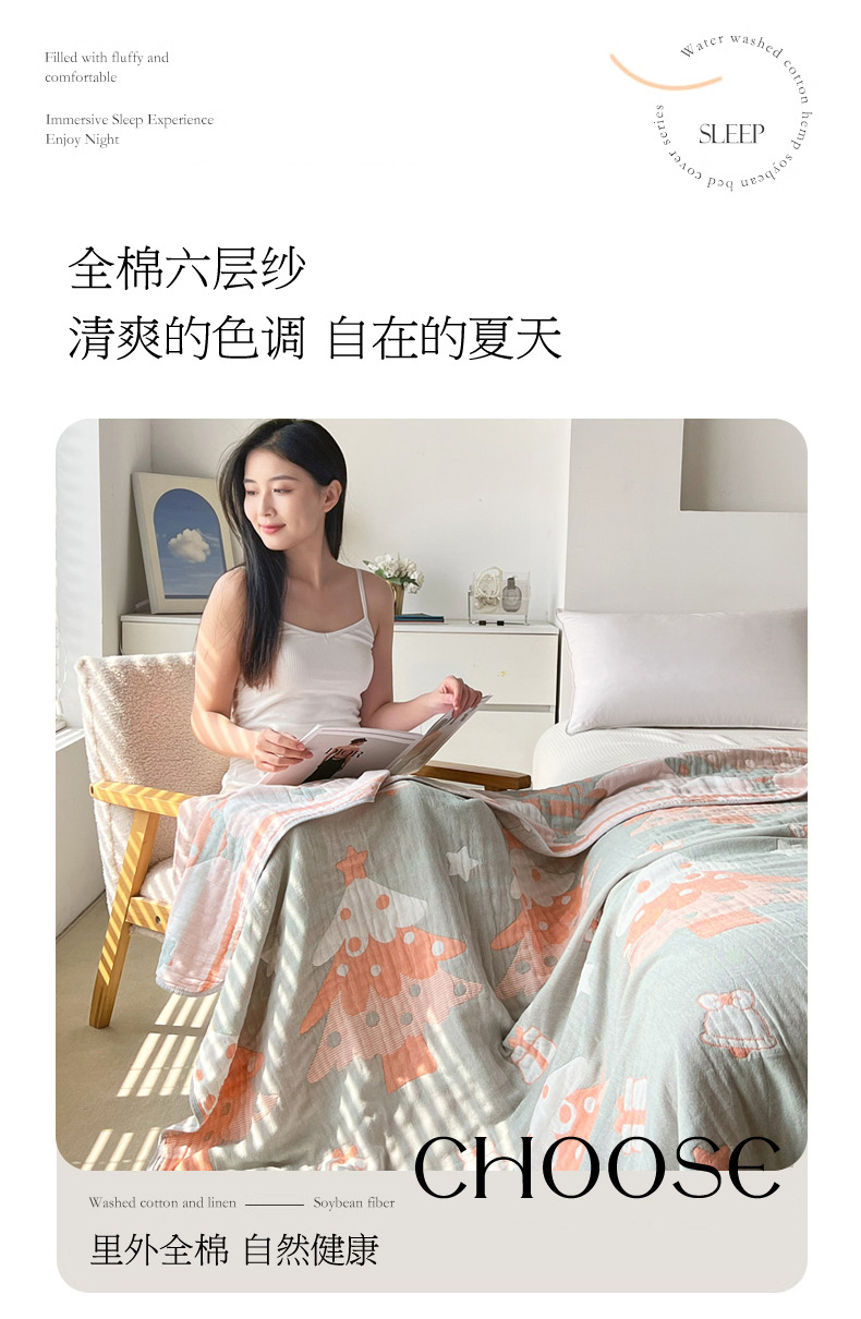 棠薇家纺 2025新款六层纯棉纱布毛巾被水洗工艺不缩水 塔松淡绿