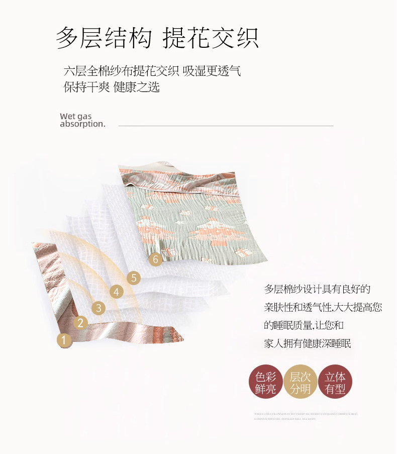 商品名称:棠薇家纺 2025新款六层纯棉纱布毛巾被水洗工艺不缩水 塔松淡绿