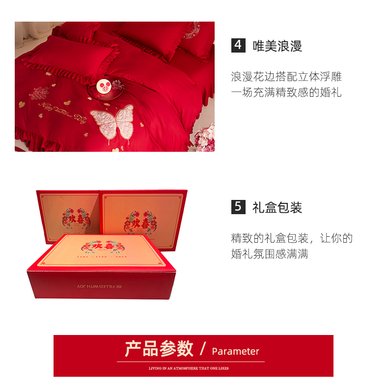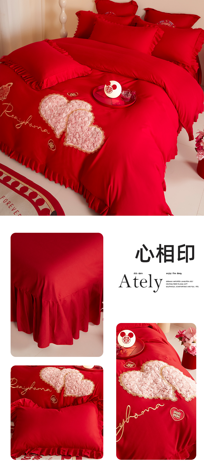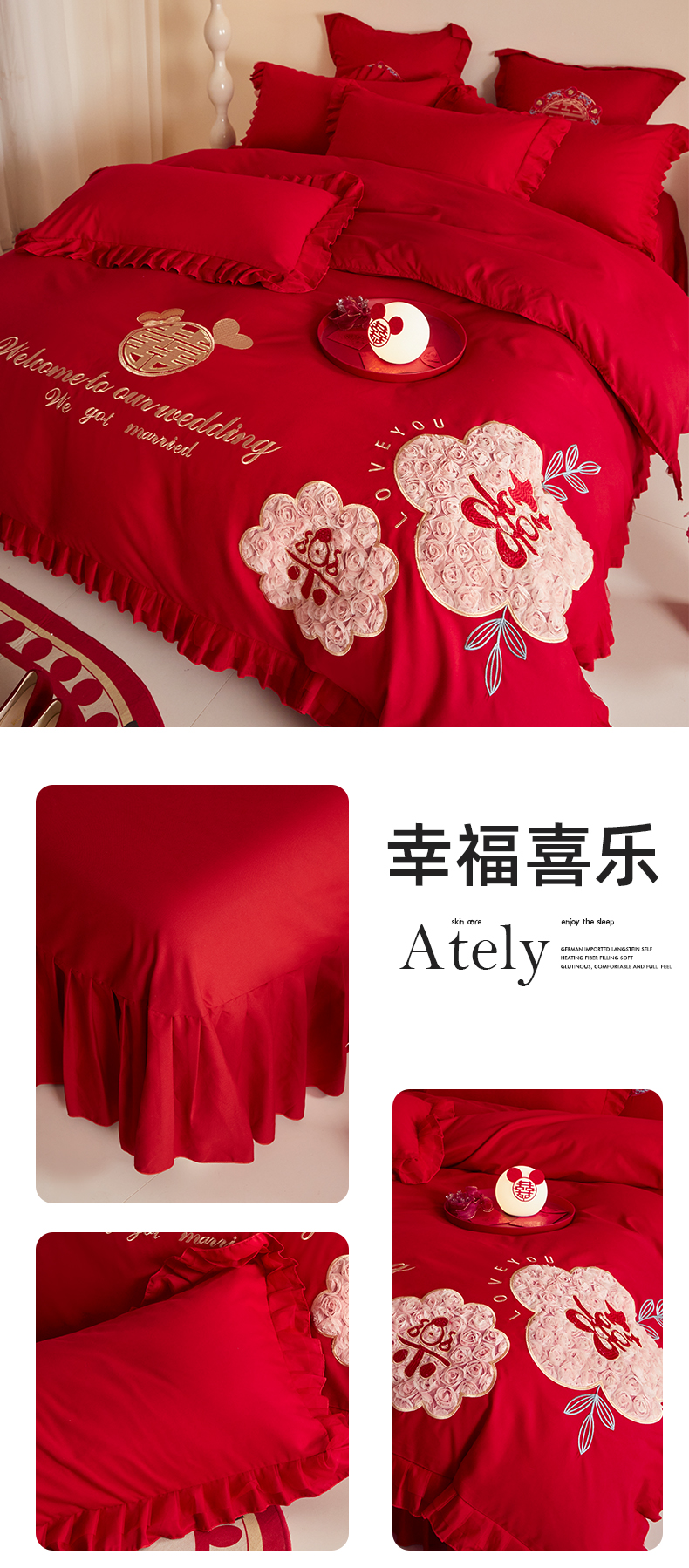 (总)玉雅家纺 2025新款水洗冰丝刺绣床裙款婚庆四件套,床裙款-爱意浓,床裙款-大喜日子,床裙款-欢欢喜喜,床裙款-龙凤缘,床裙款-我们结婚啦,床裙款-喜临门,床裙款-心相印,床裙款-新婚快乐