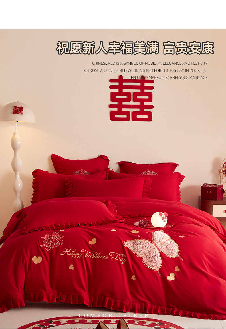 (总)玉雅家纺 2025新款长绒棉花边款刺绣时尚婚庆四件套,花边款-今喜,花边款-红妆,花边款-今世缘,花边款-双喜临门,花边款-同心缘-红,花边款-同心缘-奶油黄,花边款-喜爱,花边款-喜發,欢喜乐,心欢喜