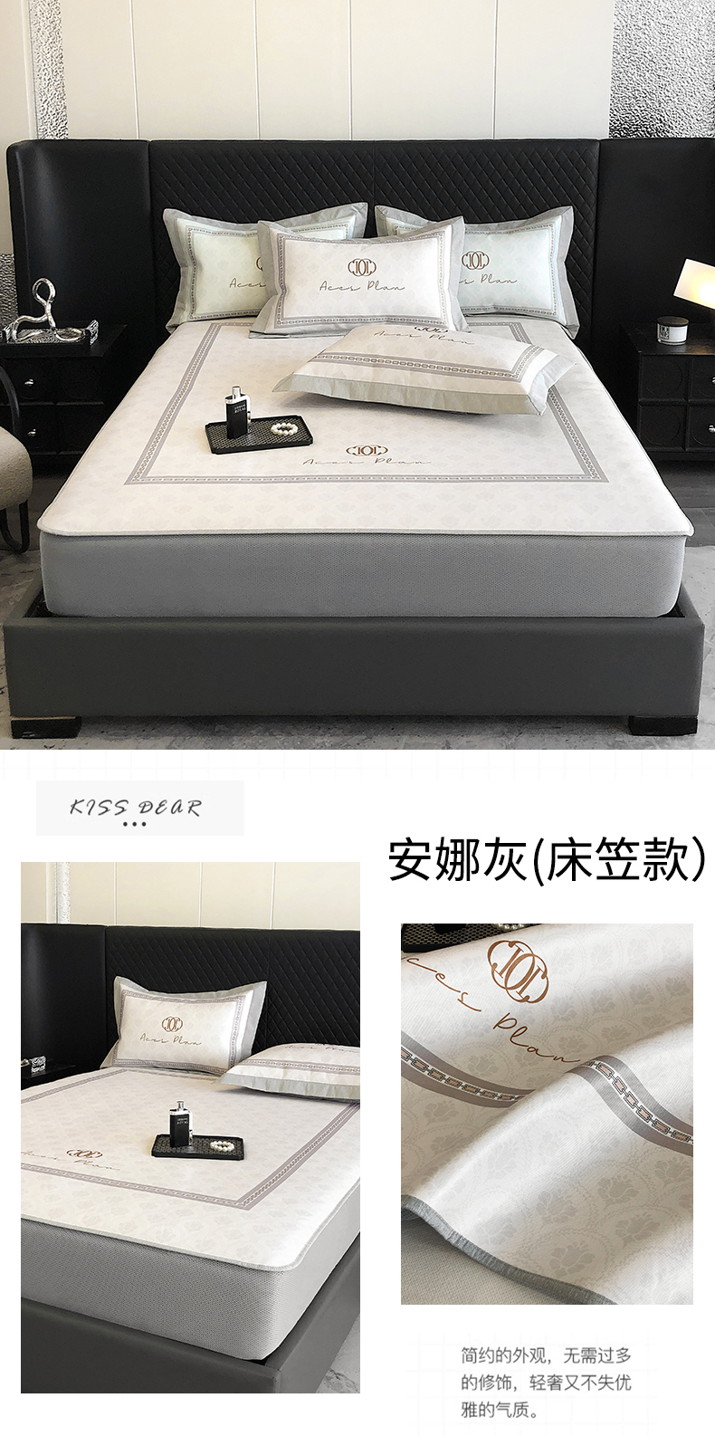 商品名称:三味舒屋 2025新款凉感抗菌防螨印花冰丝养生席手绘系列床笠款【简欧】 安娜灰