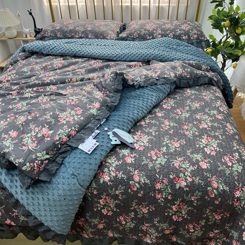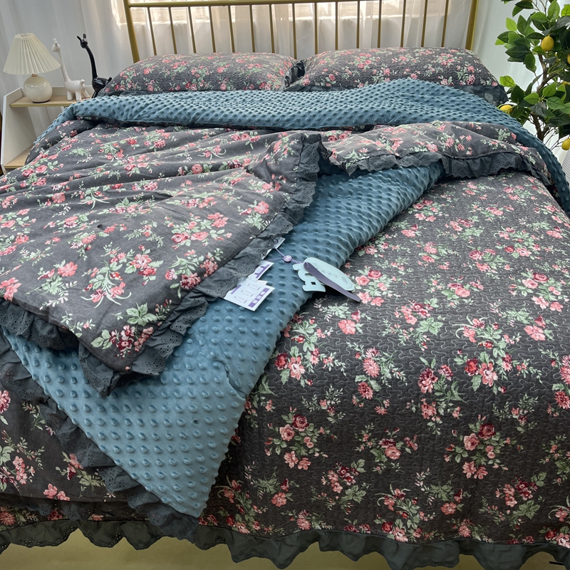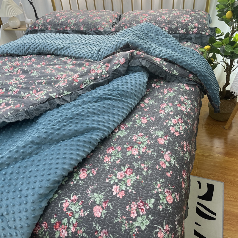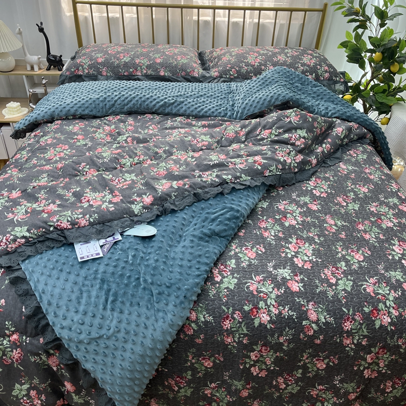 (总)暖居 2026新款一面纯棉一面绒床盖+同款纯棉豆豆被跑量,兰意,冰淇淋,绿芽,奶油波罗,森系绿野,疏影,樱桃密果,黑巧豹纹,小花,星月
